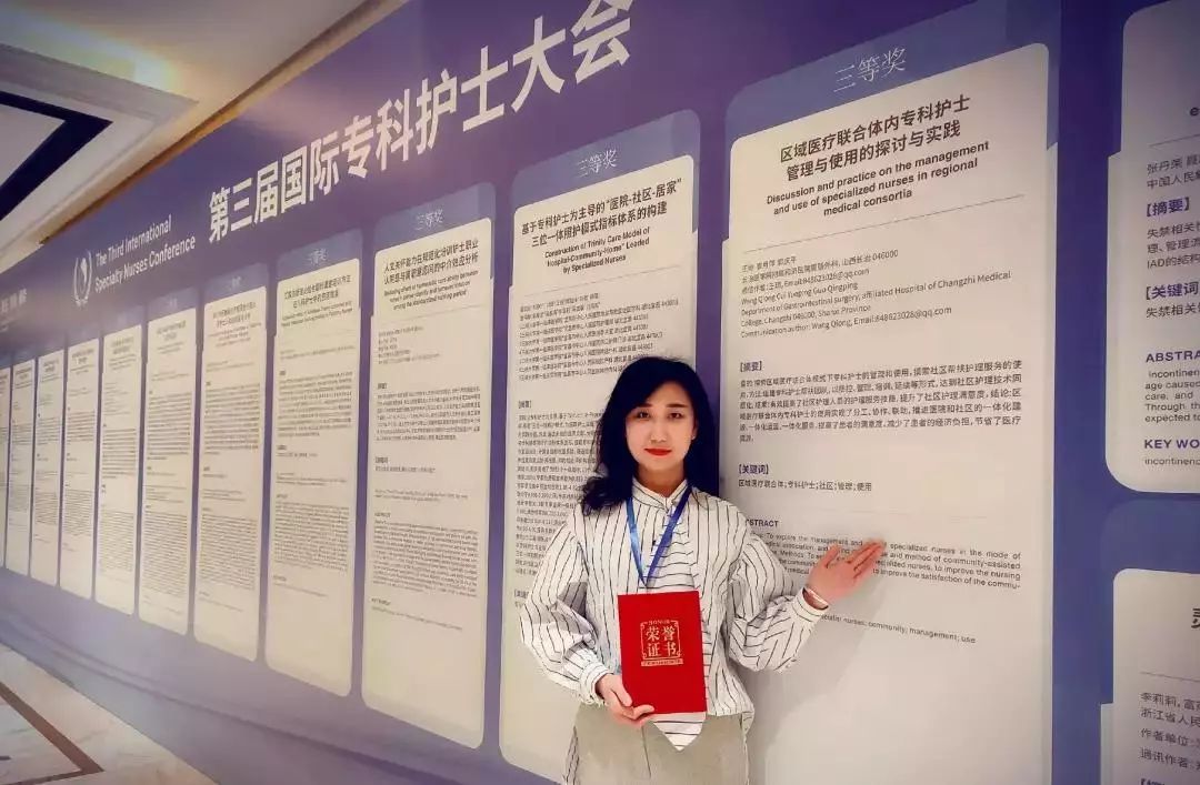 在本次大会论文征集中,共收到全国各地参赛论文600余篇,角逐激烈。经专家组严格的初审、复审,最终和济医院护士王琼递交的《区域医疗联合体内专科护士使用与管理的探讨与实践》荣获2019第三届国际专科护士大会论文三等奖,并在大会中进行壁报交流。