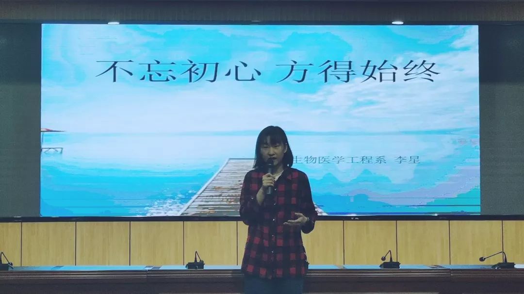 各位选手依次上台大显神通,路晓龙同学的演讲《不忘初心,无悔出发》首先以三个问题开场,听众积极配合他的提问,结合自身情况深思“自己是否做到不忘初心”,将听众带入思考之后,他将自己的观点娓娓道来,那平淡的话语中仿佛蕴含着无限的能量。