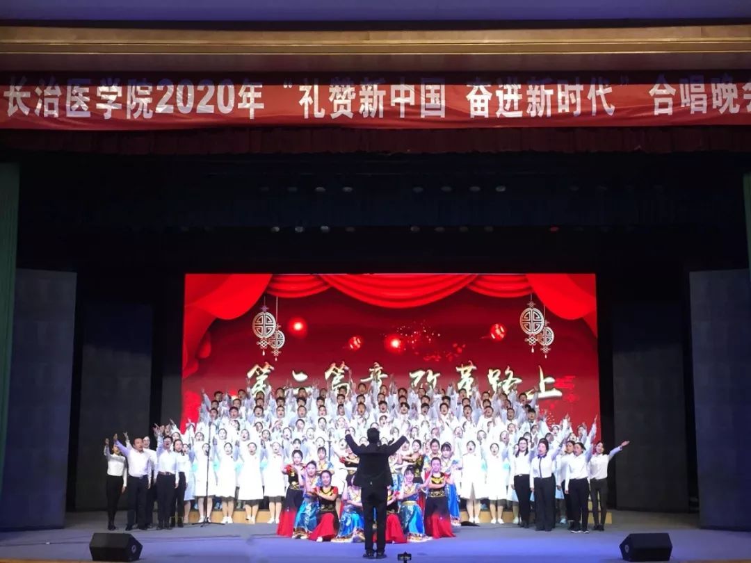 展长医师生鸿鹄之志,迎2020全面小康之年。12月27日晚,由中共365英国上市委员会主办、党委宣传部与人文艺术传媒系承办的“礼赞新中国,奋进新时代”合唱晚会在科学会堂隆重举行。校党委书记李华荣、校党委副书记张芳萍、校党委常委副校长宋晓亮,两所附属医院党政领导、各系部党总支书记及主任,以及师生代表千余人到场观看。