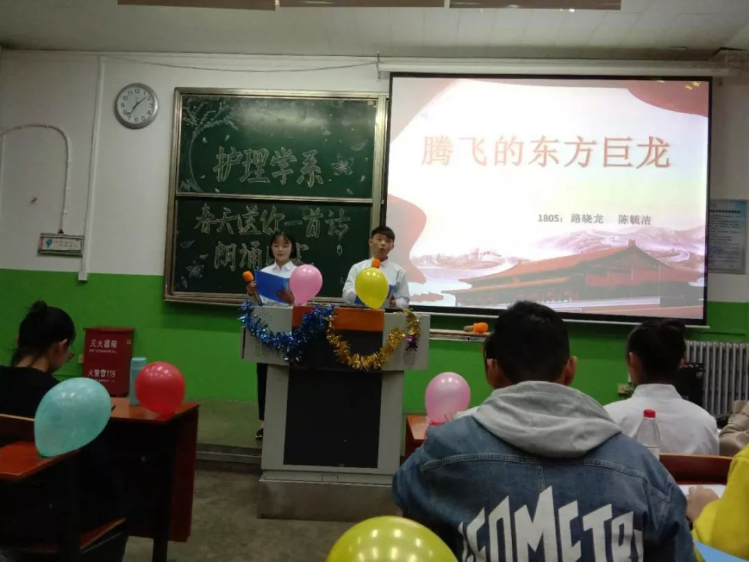 3月31日晚,为迎接五四运动100周年,推动校园文化建设,展现当代青年学生的精神面貌,护理学系学生会于北区7教举办了护理学系“春天送你一首诗”朗诵比赛。