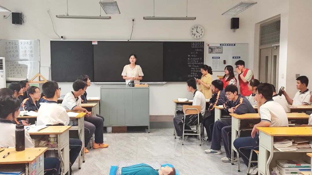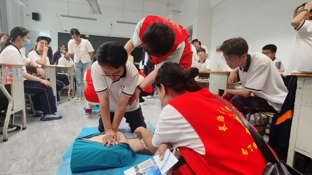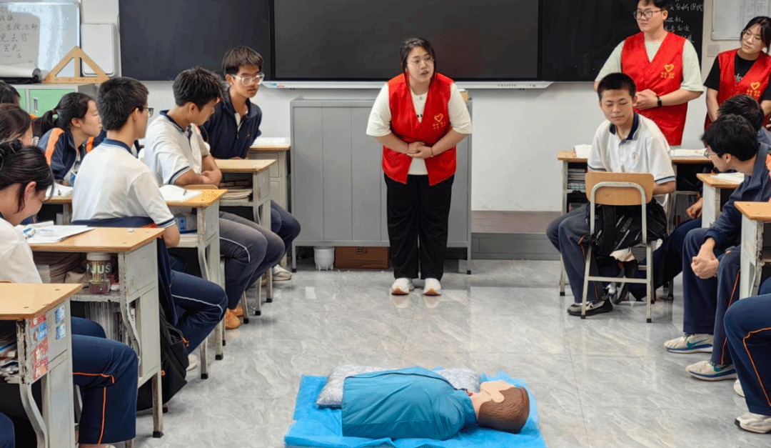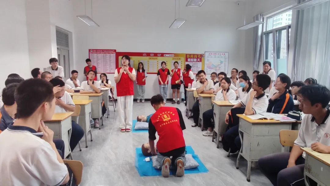 上午9:00,队员们来到高624班。经过简单的准备后,由韩婷婷老师为同学们介绍了团队的基本情况及本次活动的目的。随后,由王书仙和杨邵焜同学讲解并示范心肺复苏急救内容。讲解过后,几位学生代表受邀体验心肺复苏按压流程,队员们在旁边耐心给予指导,同学们积极参与认真学习,并进行主动提问,现场气氛热烈。接着冯荷梦同学为同学们讲解了海姆立克急救知识。