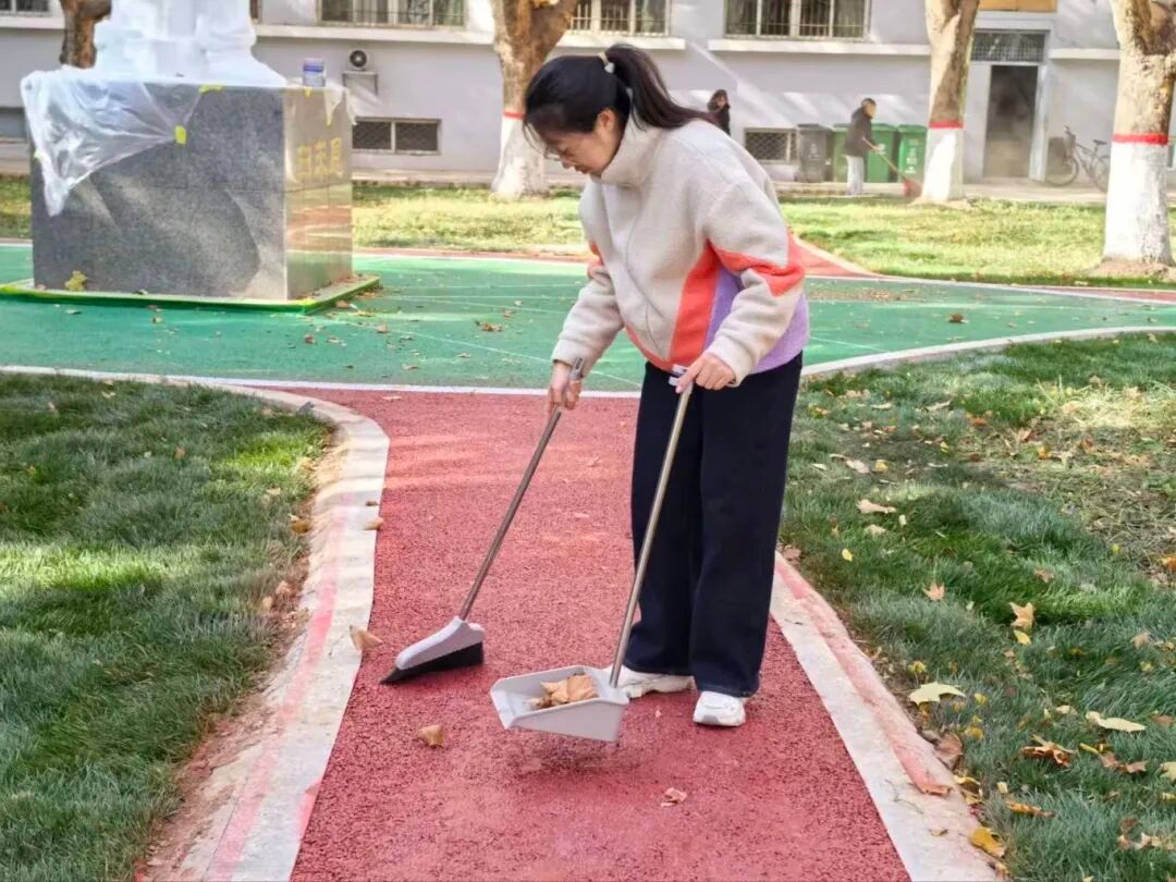 活动开始,负责人制定详细的清扫方案,明确各区域的责任人与清扫标准,向同学们普及环保知识与劳动技能。活动过程中,各个小组分工明确、配合默契,仔细地将落叶清扫装袋,对隐藏在草丛中的杂物进行清理。最后,后勤组统一将垃圾袋扔至指定垃圾站并将工具整理归还。