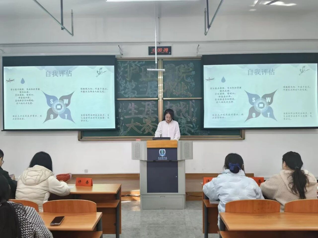 比赛现场气氛紧张而热烈。各位选手立足所学专业,结合个人兴趣、能力特质与行业前景,详细阐述了各自的短期目标与长远生涯规划。从精准的行业分析到可行的实践路径,从理性的自我认知到充满社会责任感的职业愿景,选手们的表现充分展现了当代大学生立足现实、展望未来的规划能力与积极向上的精神风貌。