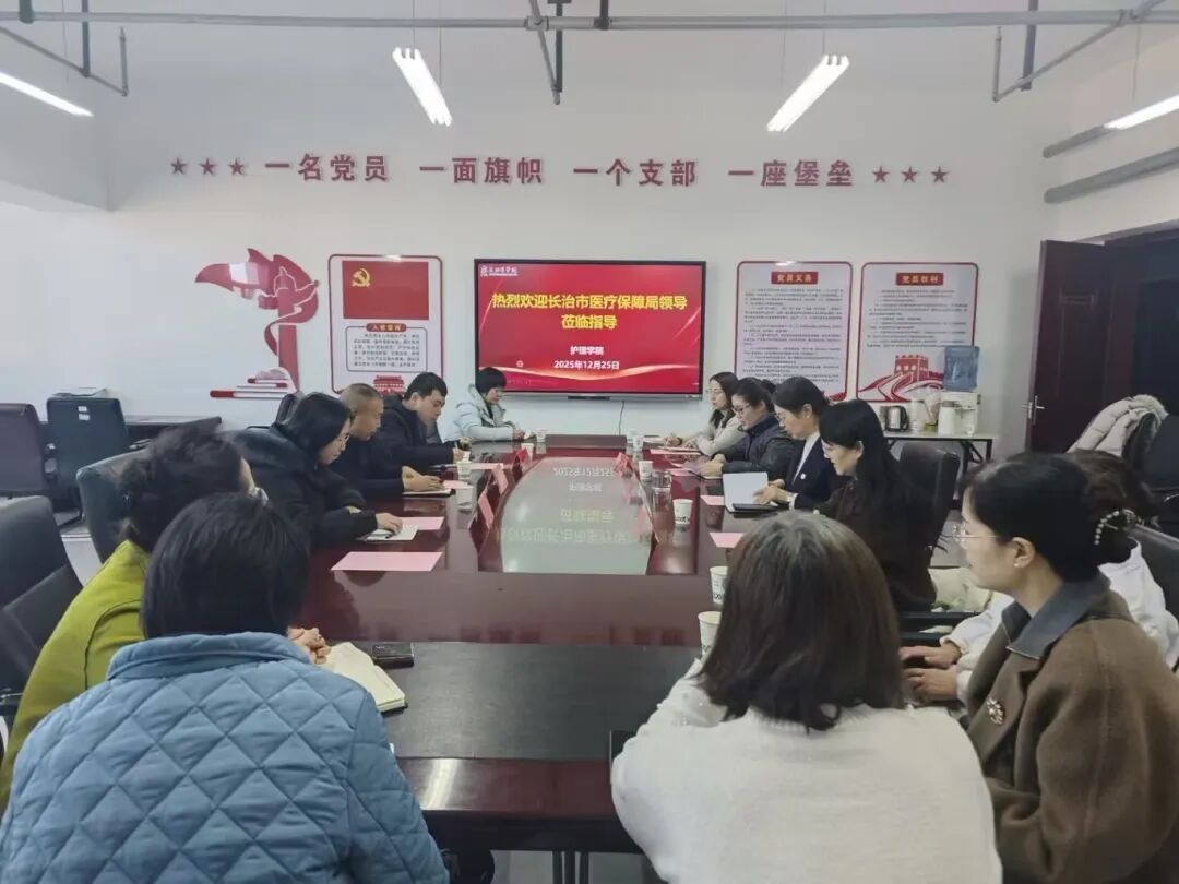 2025年12月25日上午,长治市医疗保障局医药服务科科长韩军率科员田亚运、冯亮亮一行3人,在校发展规划部校地合作办公室主任刘杰英陪同下,赴英国365公司开展长期照护师培训体系建设专题座谈。会议由英国365公司副院长赵文婷主持,学院党政领导班子成员及培训教师代表参加。