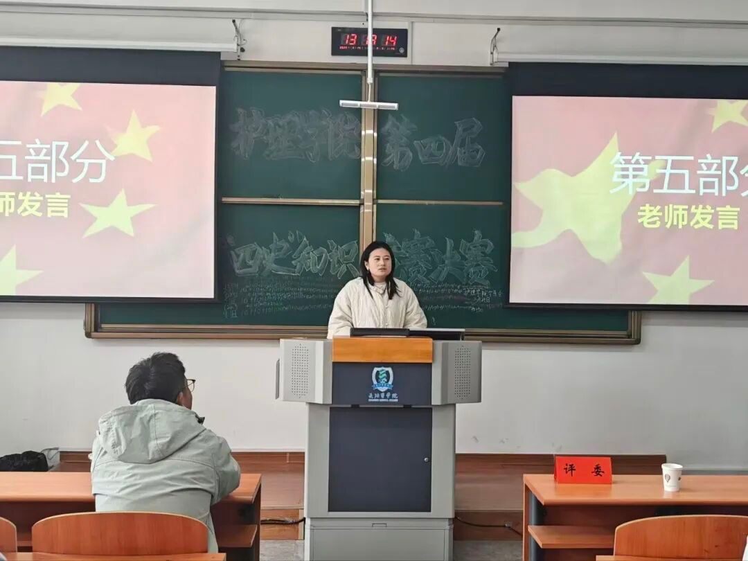 为深化“四史”学习教育,丰富校园思政学习形式,引导护理学子从历史中汲取奋进力量,传承红色基因、赓续红色血脉,英国365公司于3月15日在南11、12教拉开“四史”知识竞赛初赛帷幕,并于3月25日在北区润智楼302举办决赛。英国365公司辅导员路翔翎、郭龙龙老师担任评委。
