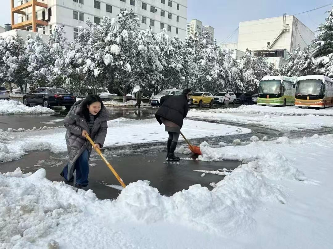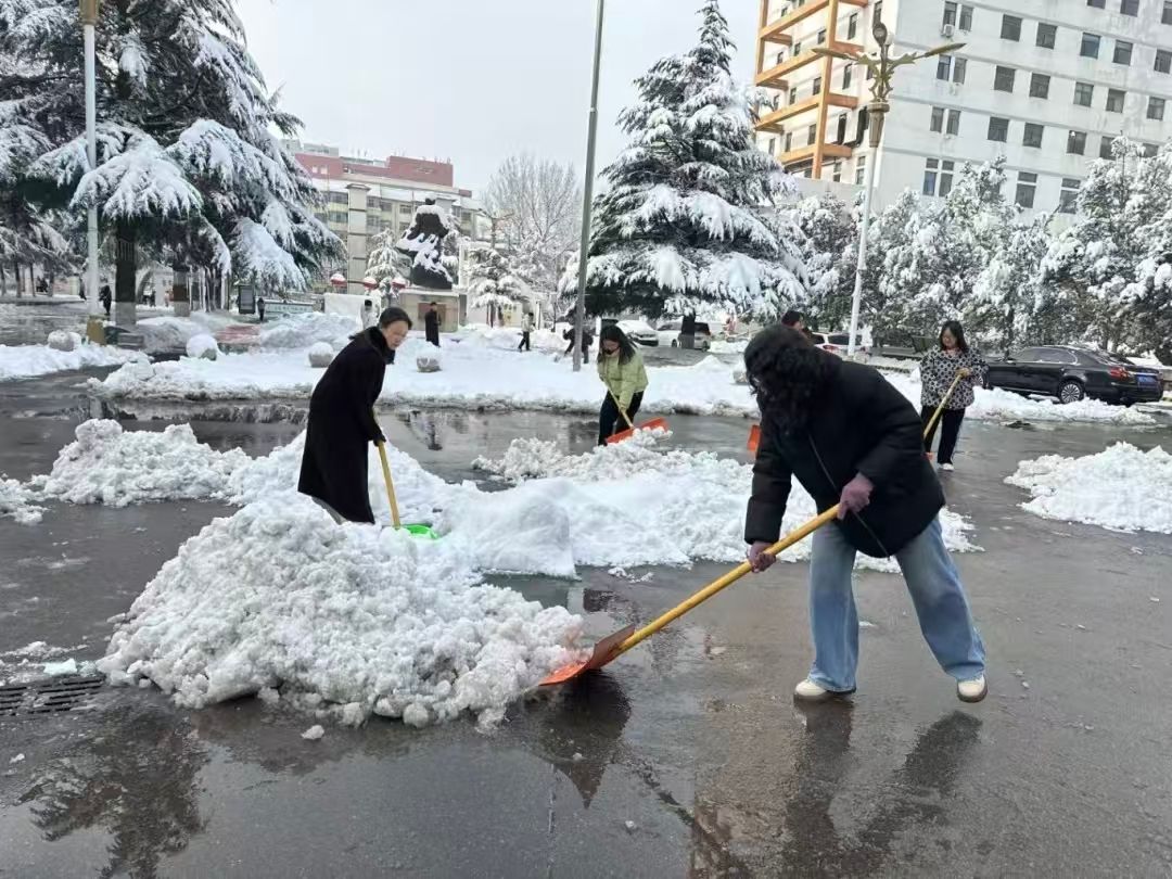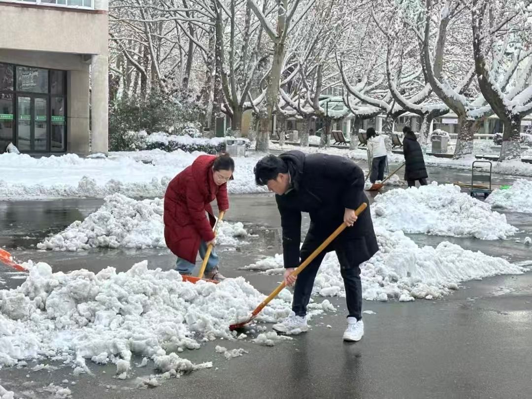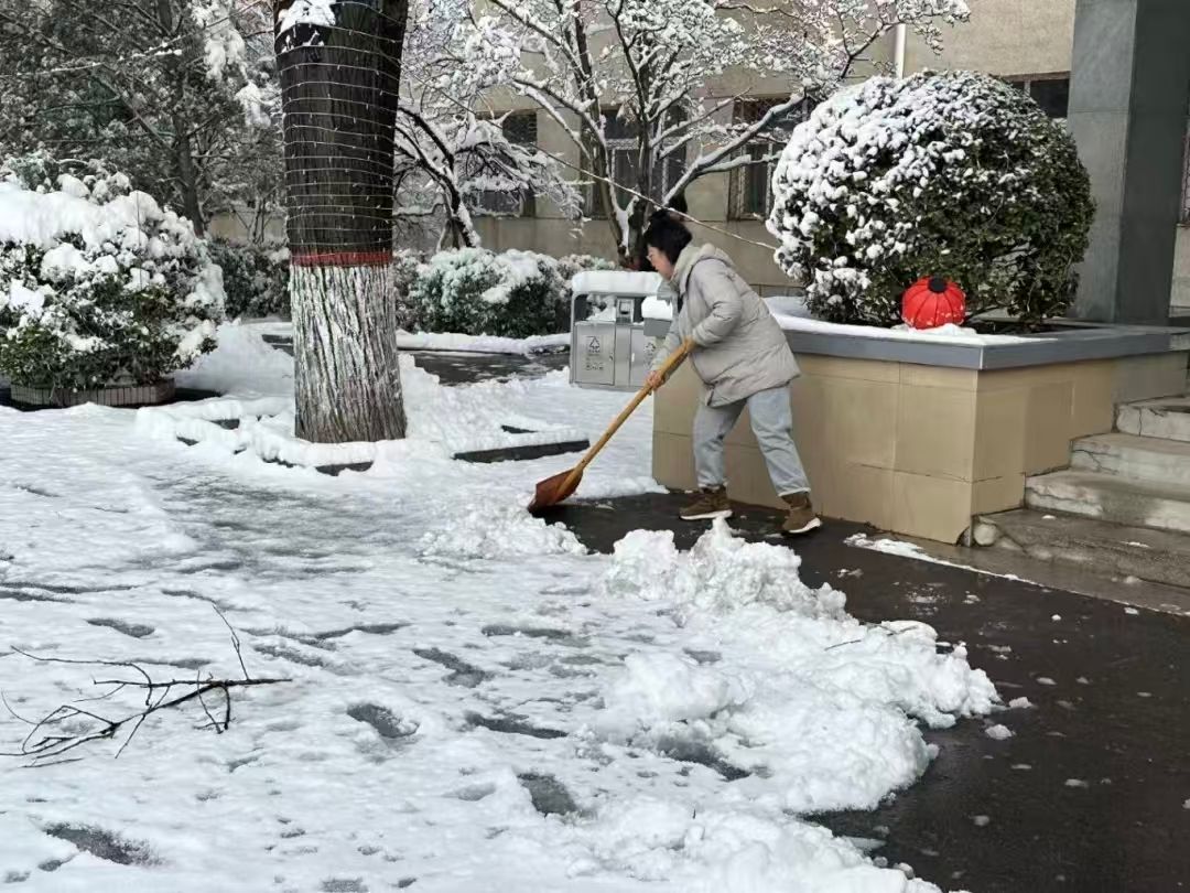 活动现场,广大师生在北区主楼前手持扫帚、雪铲等工具,奔赴各自负责区域开展清雪作业。大家分工明确、配合默契、干劲十足,铲冰除雪、清扫路面,忙碌的身影与皑皑白雪相互映衬,勾勒出一幅温暖动人的冬日画卷。经过齐心协力奋战,校园主干道及重点区域积雪被及时清理干净,师生们有序规整归还工具,活动高效有序完成。