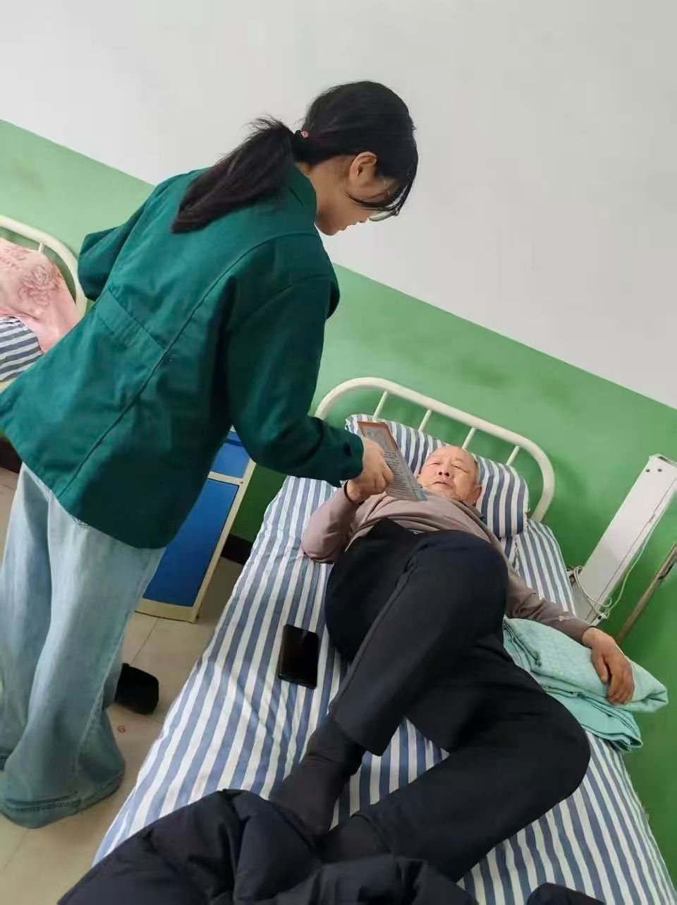 在乡镇卫生院的病房与走廊,健康宣教的温暖从未缺席。病床前,我俯身向卧床的老人轻声讲解健康事项,确保听得懂、记得住;走进药房里,我手持健康宣传册,为等候的家属解读健康要点,用耐心化解焦虑。从病房到走廊,从老人到家属,每一次讲解都是一次守护,让我明白:护理的温度,就藏在这一次次接地气的健康传递里。