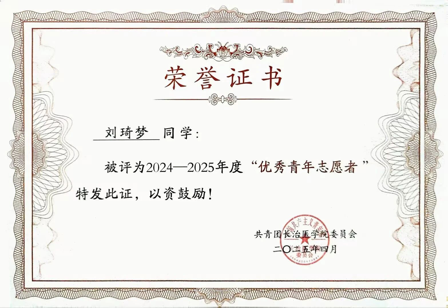 心有所信,方能行远;道有所向,方能致远。从提交入党申请书到成为中共预备党员,思政学习早已成为刘琦梦同学成长路上的“指南针”,为她的专业实践与志愿服务注入了不竭的精神动力。 她始终认为,思政学习不是空洞的理论,而是能转化为实际行动的精神养分,是支撑她前行的责任与担当。在志愿服务中,思政学习传递的奉献、友爱、互助、进步精神,让她始终站在服务对象的角度思考问题,用心对待每一项细微的工作;在护理实操中,思政教育强调的严谨态度、责任意识,让她对每一个操作流程都精益求精,不敢有丝毫懈怠。 她深刻明白,作为新时代护理学子,只有将思政理念融入专业实践,才能成为一名有温度、有担当、有信仰的护理人,才能在济世助人的道路上走得更稳、更远。
