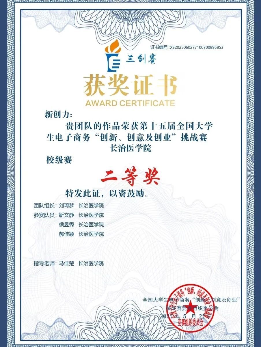 第十五届全国大学生电子商务三创赛校级二等奖