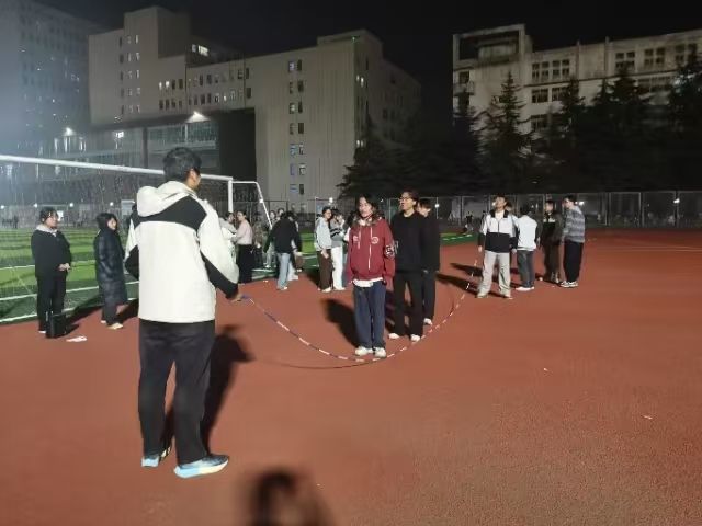 比赛伊始,主持人详细介绍比赛规则。本次比赛以宿舍为单位组队参赛,全体选手秉持“友谊第一、比赛第二”的原则,奋勇争先、尽展风采。赛场上,同学们精神饱满、配合默契,整齐划一的起跳声与此起彼伏的加油呐喊声交织在一起。马佳楚老师也为大家加油鼓劲,暖心的鼓励成为操场上一道亮丽的风景线。经过激烈角逐,各参赛队伍凭借出色表现决出最终名次,共评选出一等奖1名、二等奖2名、三等奖3名、优秀奖4名。