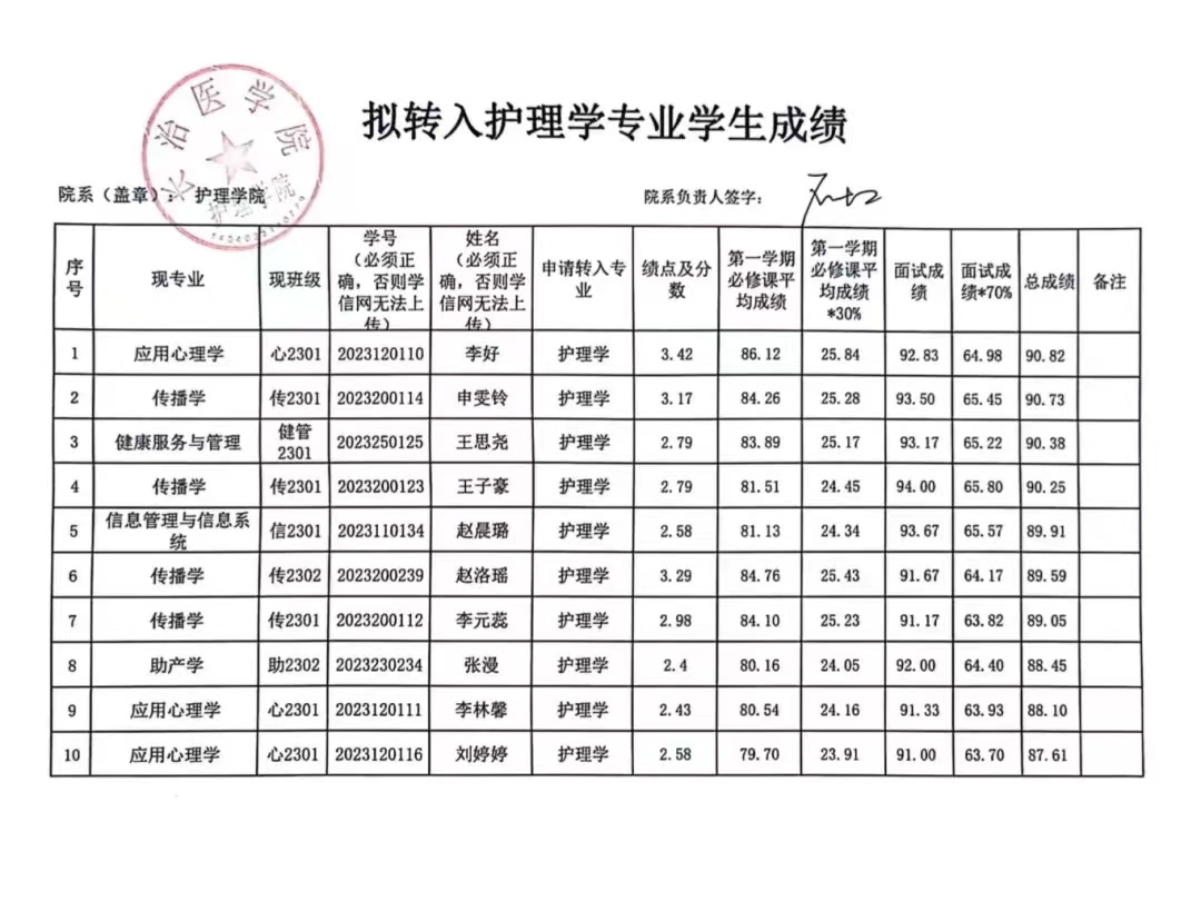 根据《365英国上市本科学生转专业管理规定》(长医教字(2021)39号)有关规定,由学生本人提出申请,经学生所在院系部资格审查、英国365公司考核通过,同意李好等十五名学生转入护理学专业。现对拟转入学生名单及成绩进行公示。