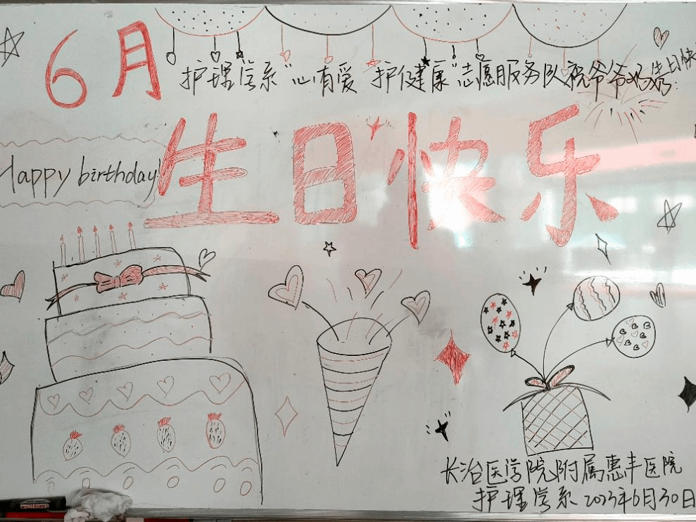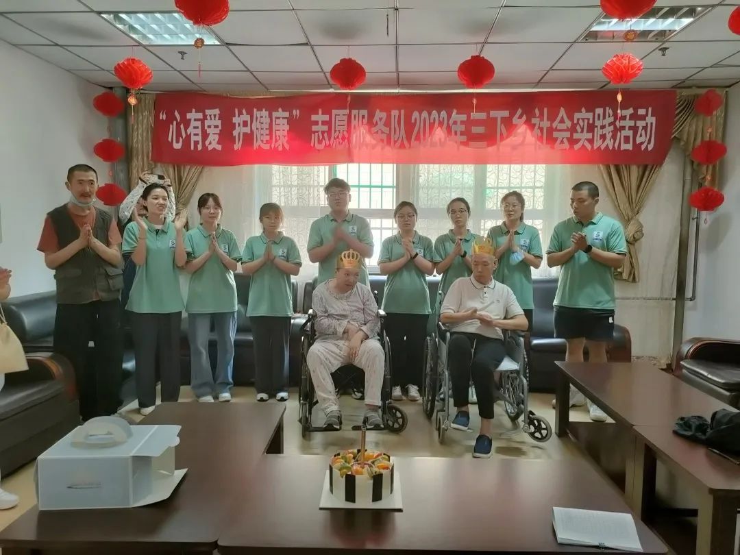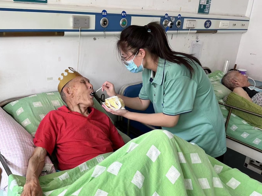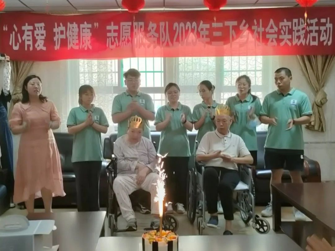 医院为6月份过生日的老人举办了集体生日会,医院护士与服务队全体成员为老人们送上了诚挚的祝福并为老人们唱了生日歌,表演了舞蹈,一位奶奶还与队员们组成表演团队,为大家表演了《唱支山歌给党听》。在生日过程中,我们喂行动不便的老人吃蛋糕帮助他们戴生日帽、整理衣物等等。
