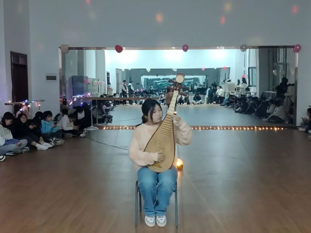 在主持人宣布后活动开始,动感的音乐,曼妙的舞姿,优美的琵琶表演,每个节目都令人陶醉。同学们热情饱满,尽情展示自我,展现出当代大学生朝气蓬勃、活力四射的青春力量;互动游戏环节引得全场沸腾,将现场气氛推向高潮,最后大家集体合影留念,为此次活动画上了一个完美的句号。
