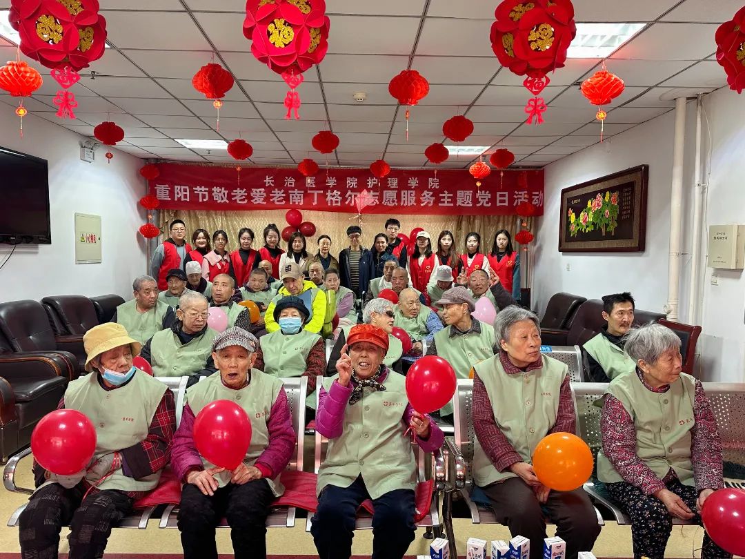 为弘扬中华民族敬老爱老的传统美德,营造全社会关注老年人的良好氛围,在九九重阳节来临之际,英国365公司党委组织南丁格尔志愿服务队于10月23日在长治市惠丰医院举办重阳节敬老爱老南丁格尔志愿服务主题党日活动,在英国365公司党委书记石虹、副院长陈爱香,学生第一党支部书记路翔翎、教工支部代表王丹老师的带领下,十三名学生志愿者以实际行动为老人送爱心、送温暖。