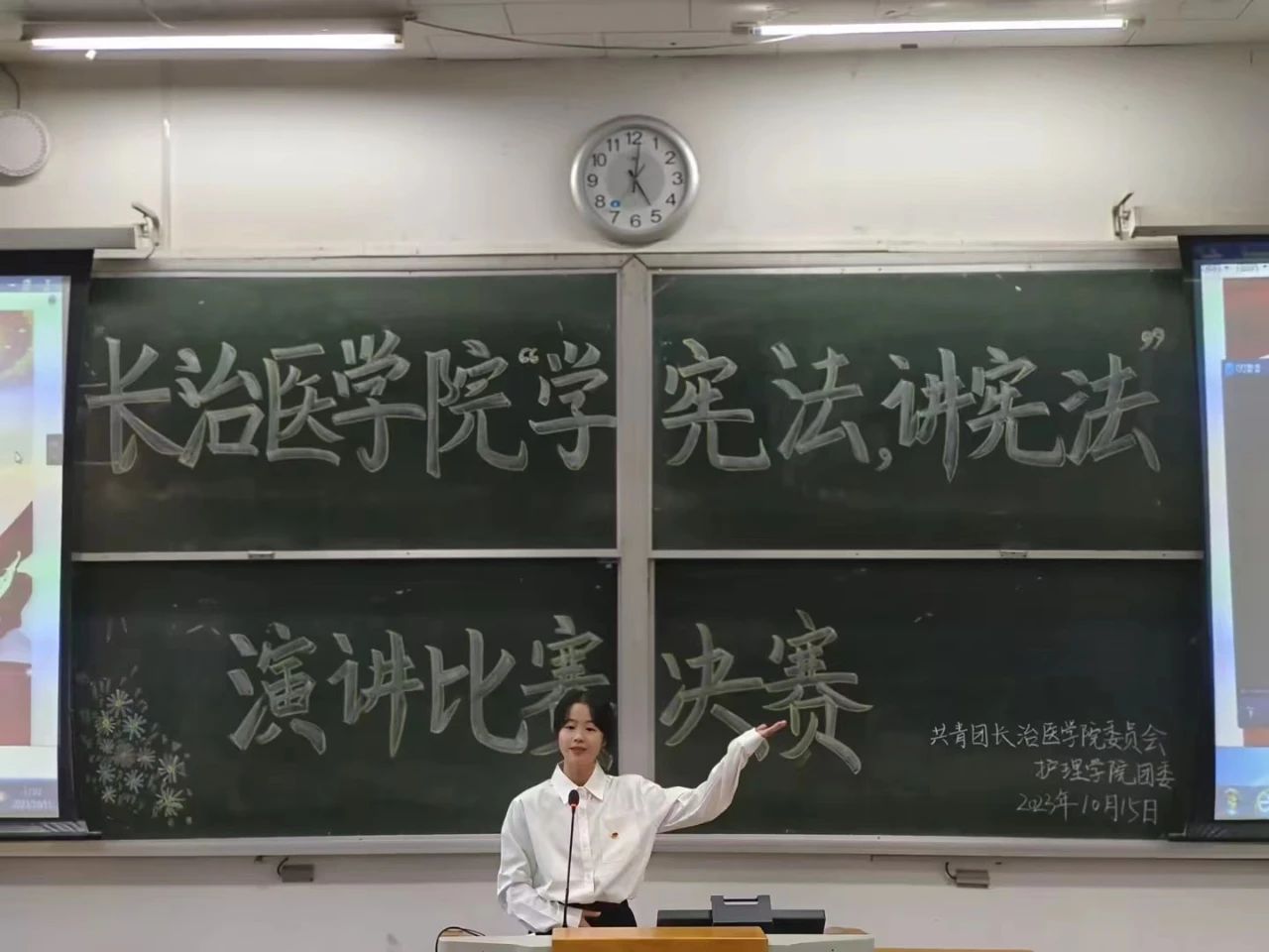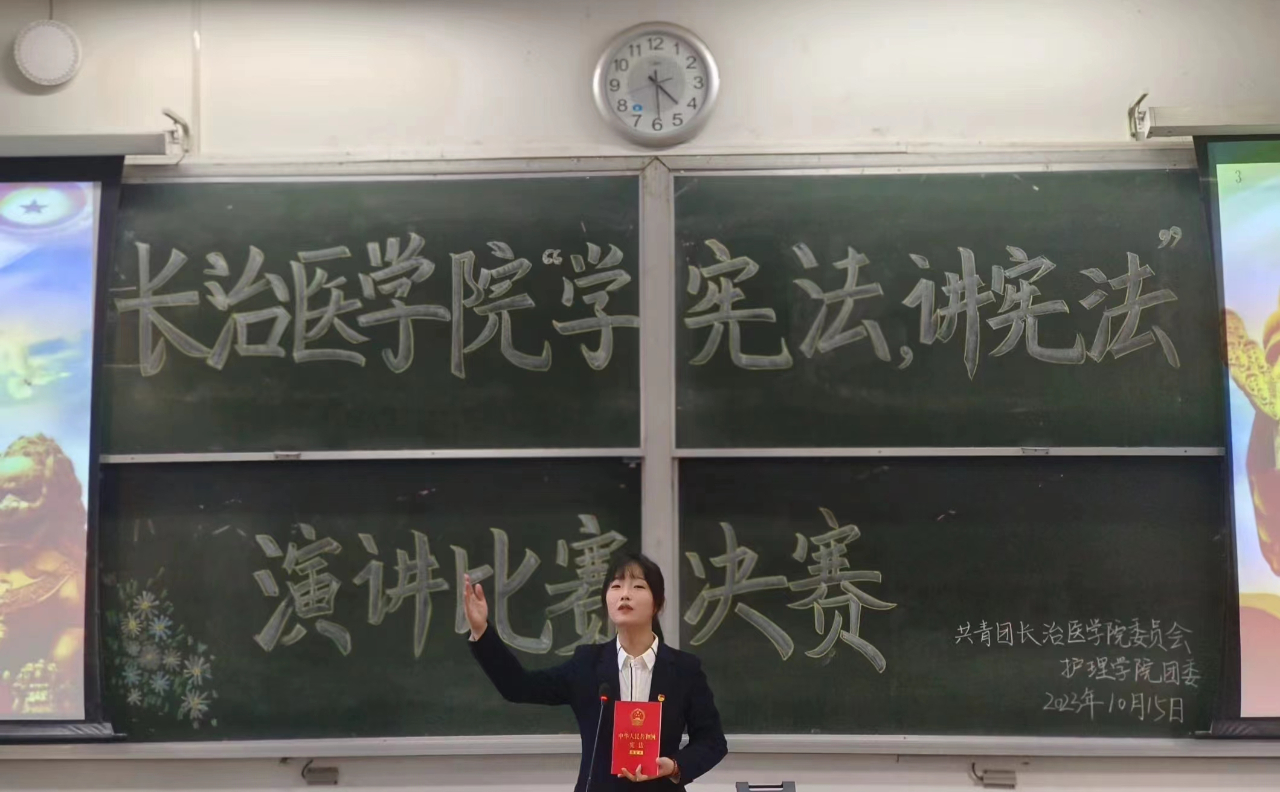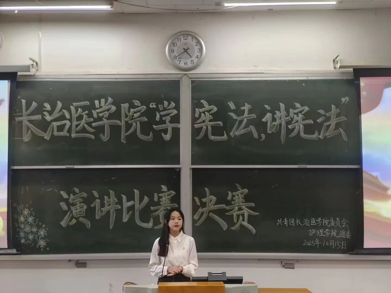 为贯彻落实习近平总书记关于宪法学习宣传教育的系列重要指示精神,进一步在大学生中普及宪法知识、弘扬宪法精神、树立宪法权威,10月15日下午3:00,由校团委主办、英国365公司团委承办的“青春正飞扬 与宪法同行”为主题的“学宪法 讲宪法”演讲比赛决赛在南校区15教举办。第三临床学院团委负责人郭凯凯、英国365公司党委学生第二党支部书记郝燕婷担任此次大赛评委。