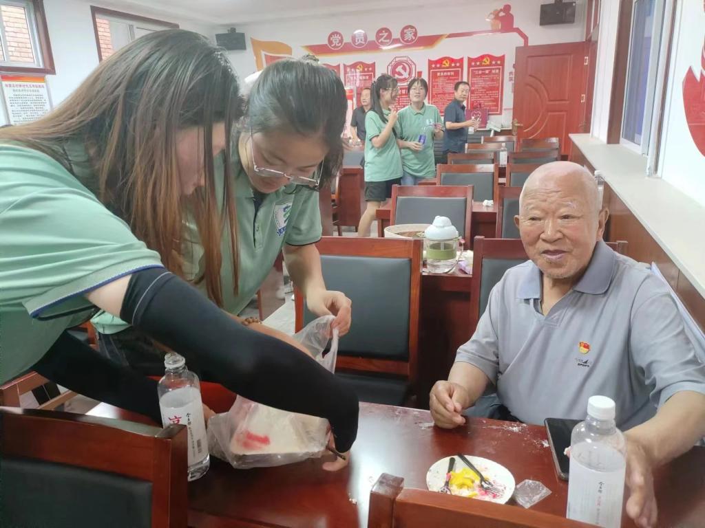 学百年党史明红色思想,以青春长征传红色基因。下午4:00大家前往堠西庄村党员活动中心参加由堠西村人民政府举办的中国共产党建党102周年党建活动。大家通过党课的学习更加深入地了解了中国共产党成立一百多年来的辉煌历史,当地政府工作人员为申振山和康锁只两位老爷爷颁发了党龄50周年纪念章,志愿者代表卫洁分享心得体会。在他们的身上,我们看到了信仰的力量,申爷爷即兴作诗送给护理学子:“党是阳光我是苗,雨露滋润把我交,不忘初心永向党,勇毅前行快步跑”,表达了他的殷切嘱托。赢得了大家的连连掌声,活动结束后大家合影留念。