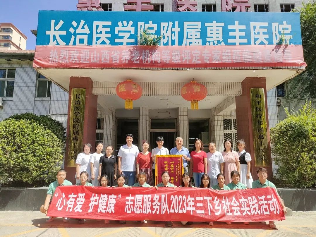 最后,由石虹书记为惠丰医院献上“心系学子,惠丰筑梦,敬老爱老,情暖人间”的锦旗,并合影留念。