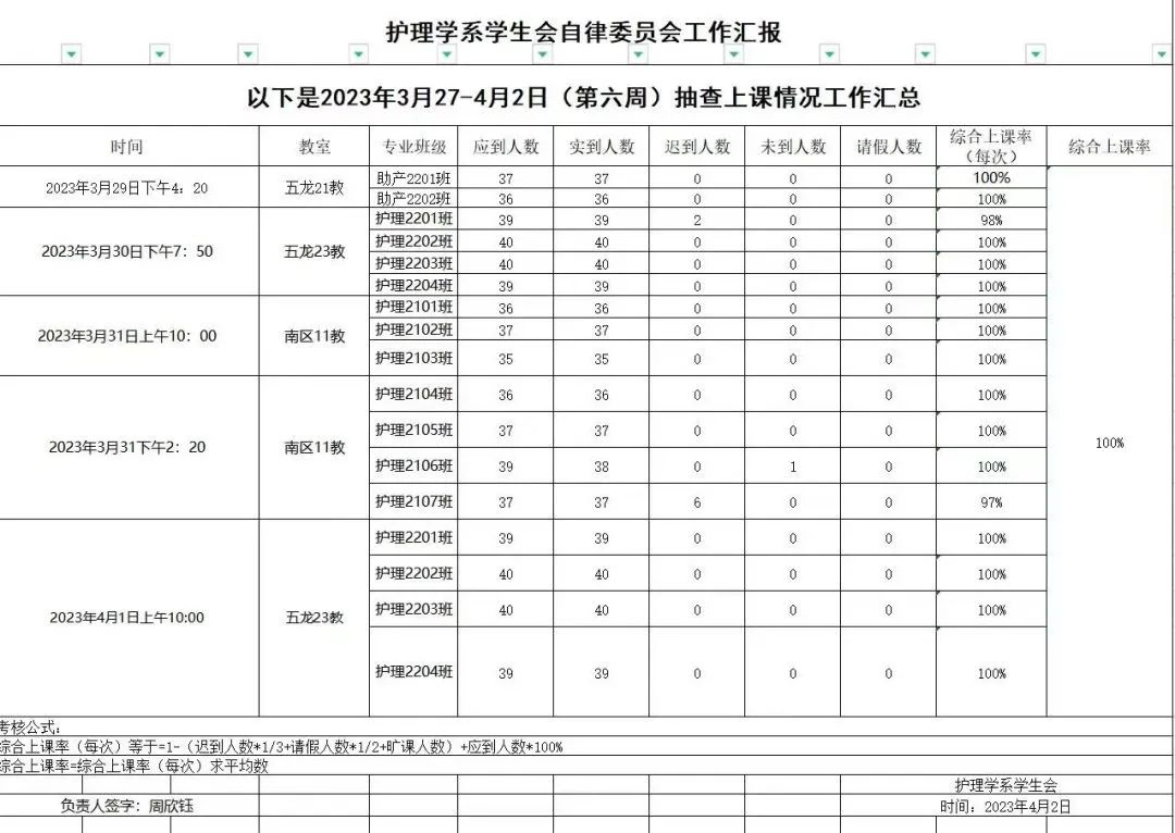 现针对第六周(3月27日-4月2日)系学生会自律委员会查课时迟到的同学进行通报,望同学们引以为戒,提高时间观念,按时上课。