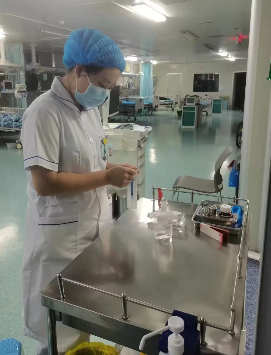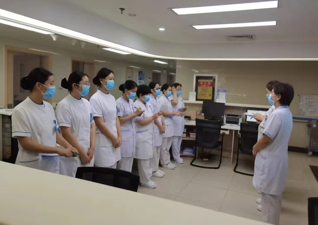 在入科的第一天,老师就告诉我做各项操作前都要进行“三查八对”,认真核对病人的信息,千万不能出差错。刚到科里时对一切都很陌生,后来在老师的带领下渐渐地熟悉了这个环境和工作流程,了解交接班制度和护理查房之后,就开始仔细观看老师的操作。这期间我学会了测血糖、使用雾化器、静脉输液、肌肉注射、皮内、皮下注射、皮试、抽取动脉血、动脉血气分析等操作,还学会了使用输液泵、微泵、心电图机、呼吸机等仪器,这些让我真正把书本的知识应用于临床,还掌握了很多书本上学不到的东西。在空闲的时候,老师还会给我讲一些病人的病情、用药及护理方面的知识。除了每天跟着老师做治疗外,科室每周都会有小讲课,会有老师教授我们一些与本科室相关的操作知识。