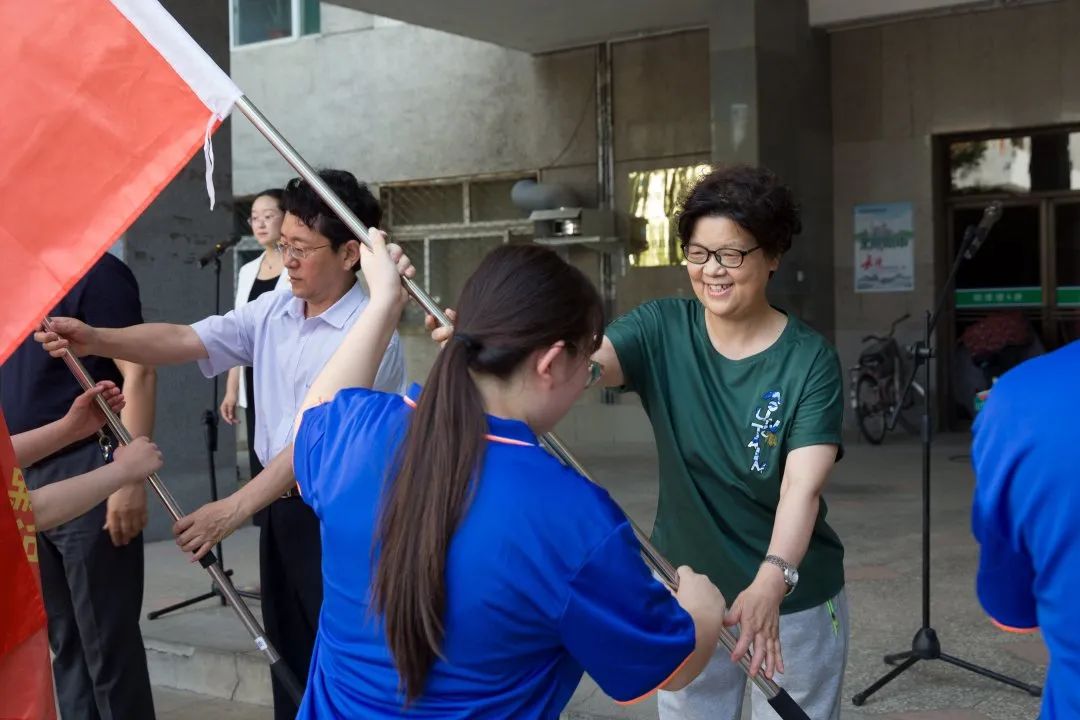 与会领导为各实践队代表授旗,志愿者学生代表智勇超带领全体实践队员进行集体宣誓。
