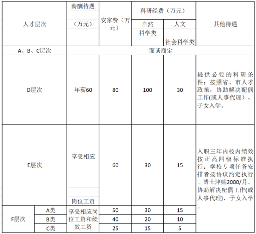 1.根据山西省人才工作相关政策,符合条件人员在学校引进待遇的基础上,由省财政给予博士后研究人员一次性生活补助20万元,科研经费不低于10万元;给予博士研究生一次性生活补助10万元,科研经费不低于5万元。