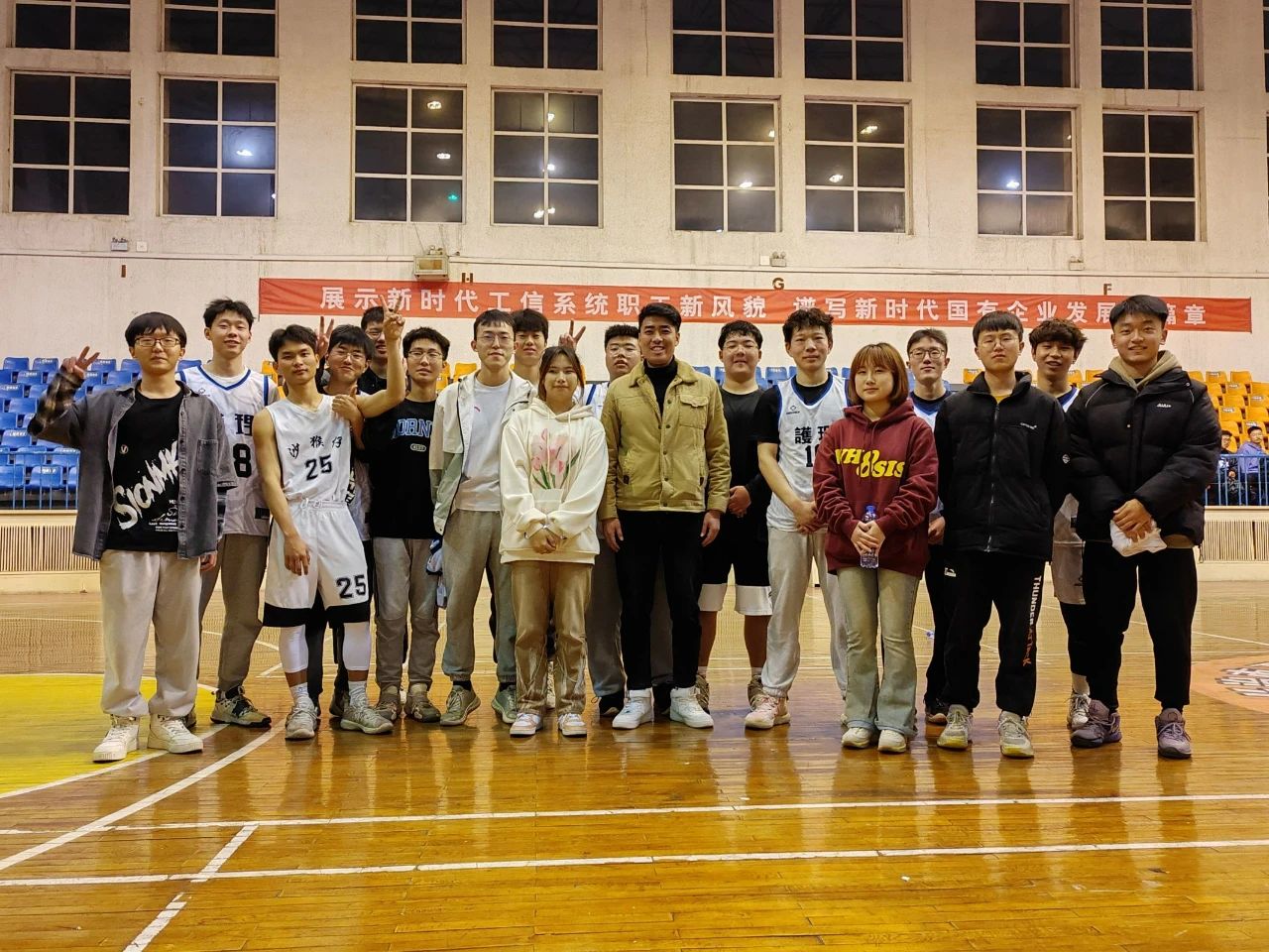 护理学系分团委书记谢冰老师也来到了比赛现场,肯定了队员们的表现,对如何更好开展高质量学生活动提出了建议,随后谢冰老师和同学们一起高唱歌曲《超越梦想》,表达了对同学们的美好祝愿。最终,比分定格在43:42(影像:护理),本次“护影杯”篮球赛圆满结束。