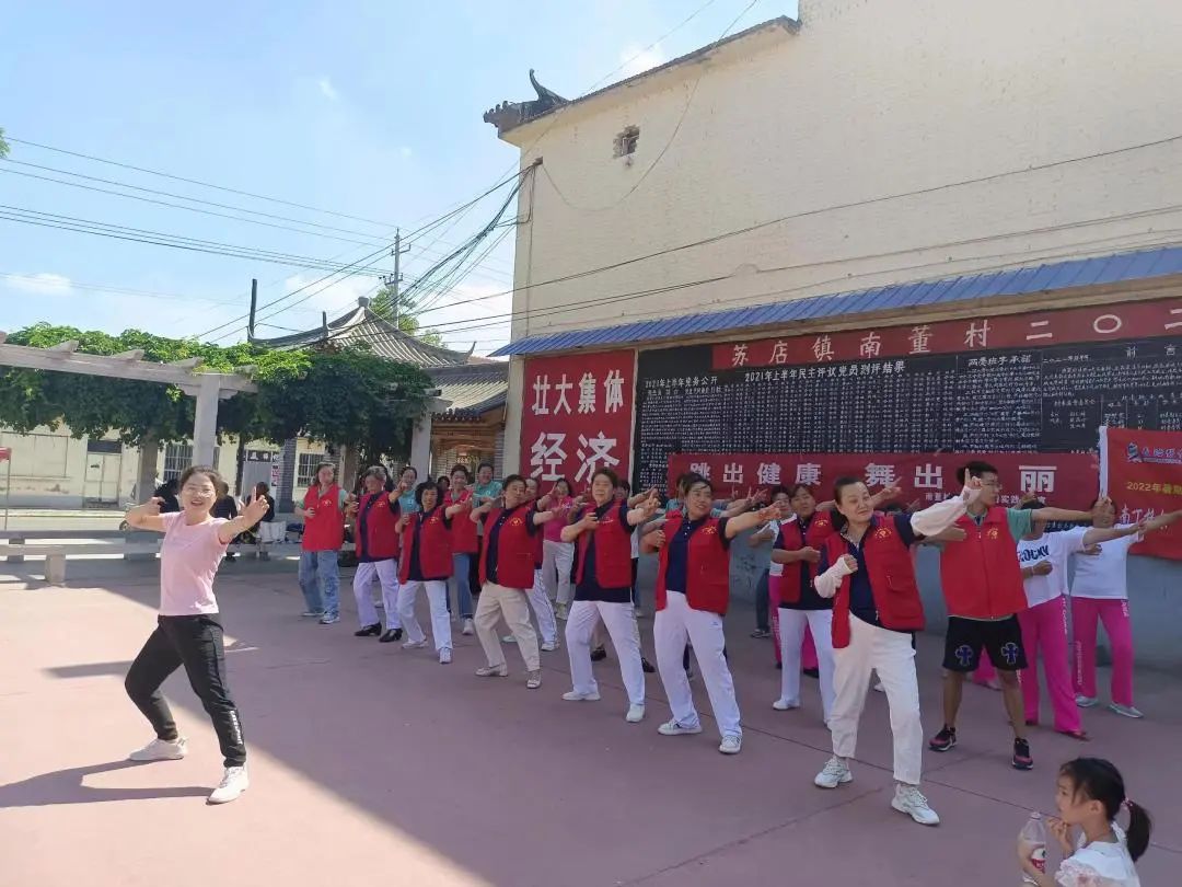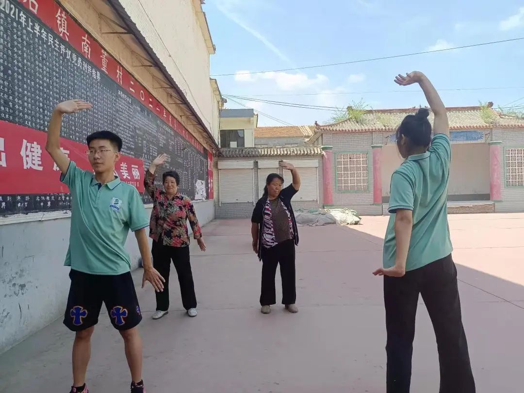 我们满怀激情的教授八段锦知识,他们学习的非常认真,让我们更加有信心教学,非常感谢南董村为我们提供音响,使活动得以正常进行。