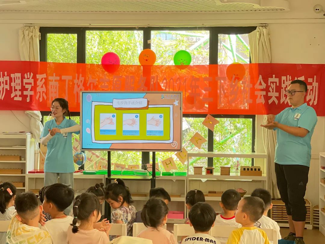 活动中,南丁格尔志愿服务队队员何玉馨向幼儿园的老师和小朋友详细讲解并演示了七步洗手法,整个活动现场气氛热烈,小朋友们热情高涨,积极参与南丁格尔志愿服务队的宣教活动,纷纷举起小手充当“小老师”,争相展示学习成果,很快便掌握了手卫生的基本操作,还表示回到家后要监督爸爸妈妈、爷爷奶奶正确洗手。幼儿园老师也对南丁格尔志愿服务队的宣教活动给予了好评。