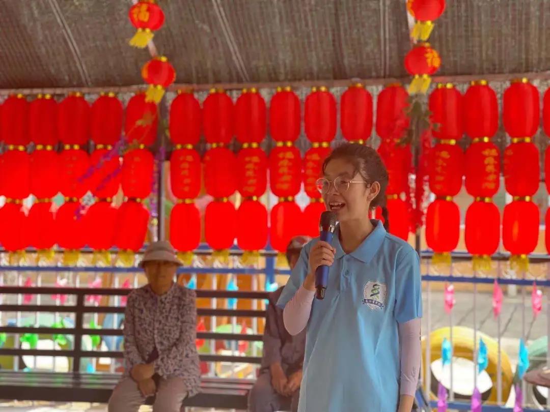 活动最后,志愿者为老人们演唱了《我和我的祖国》、《没有共产党就没有新中国》,并朗诵了《祖国万岁》。看着志愿者们努力的表演,老人们的脸上挂满了笑容。
