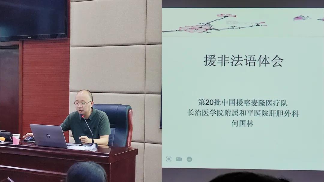 8月30日至31日,山西省卫健委邀请援非归国优秀医生为2021年中国山西援非医疗队法语培训班学员传授经验。我校附属和平医院何国林应邀作心得分享。