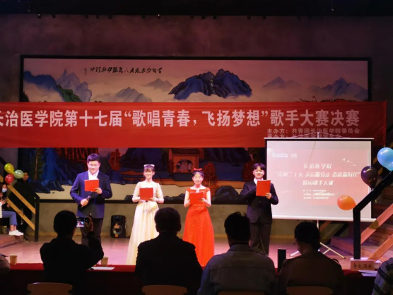 在中国共产主义青年团成立100周年之际,为弘扬“五四”精神,让广大青年以更加朝气蓬勃的精神状态投身社会主义事业伟大实践,用优异成绩喜迎二十大胜利召开。4月30日晚上6点,由校团委主办、校学生会承办“歌唱青春·飞扬梦想”校园歌手大赛决赛在音疗基地举行。党委组织部副部长赵刚,校团委副书记连静,护理学系团委书记谢冰,基础医学部团委副书记李秀萍,人文艺术系教师路瑶、武艺蕾,第十六届校园歌手大赛一等奖获奖者宇文潇东担任大赛评委。