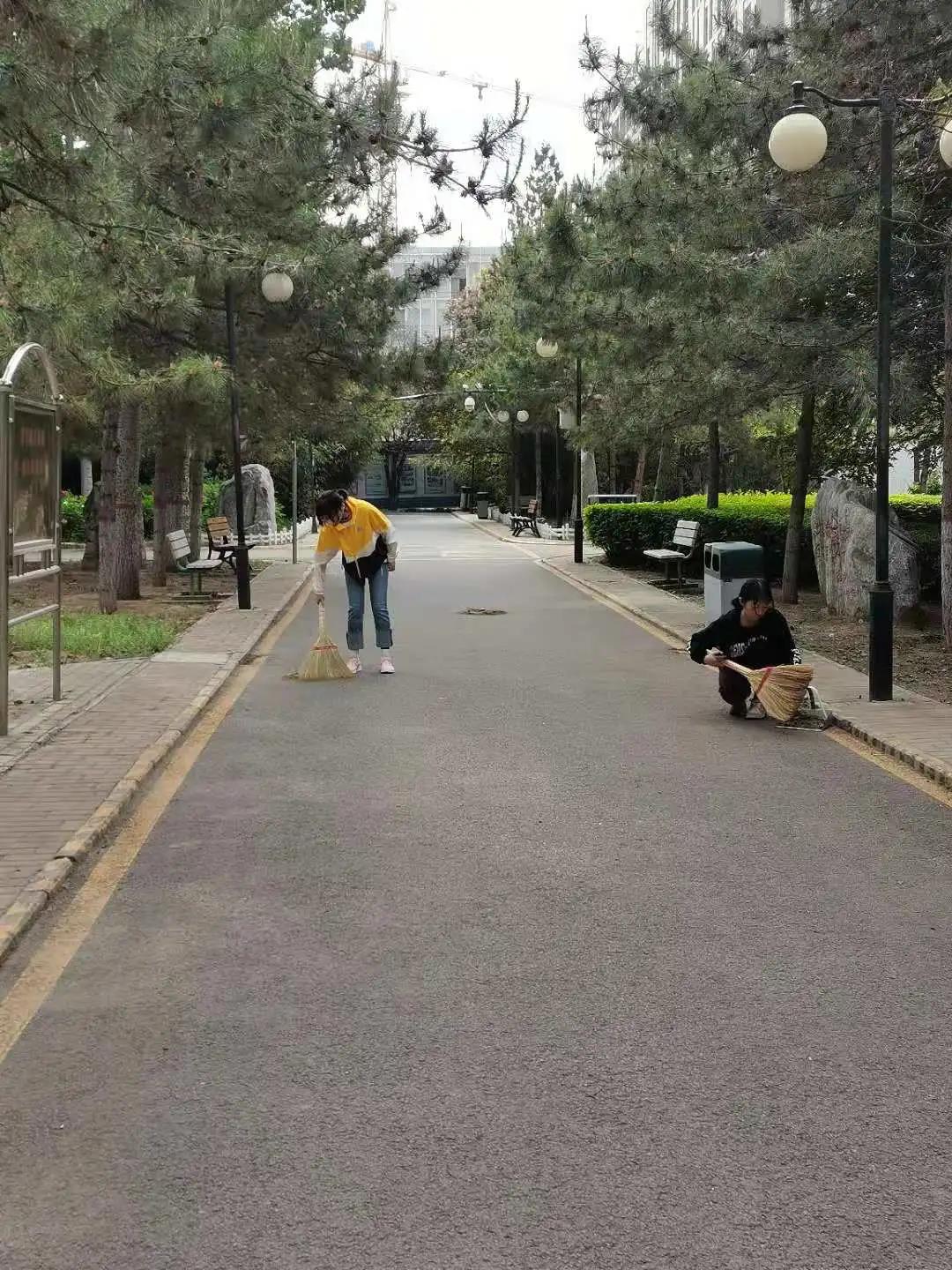 假期中,每个班的负责人将具体的劳动任务分配到护理学系每一位在校学生,他们每天准时迎着朝阳拿着各种打扫工具到达各自负责的卫生区中开展每日劳动课。