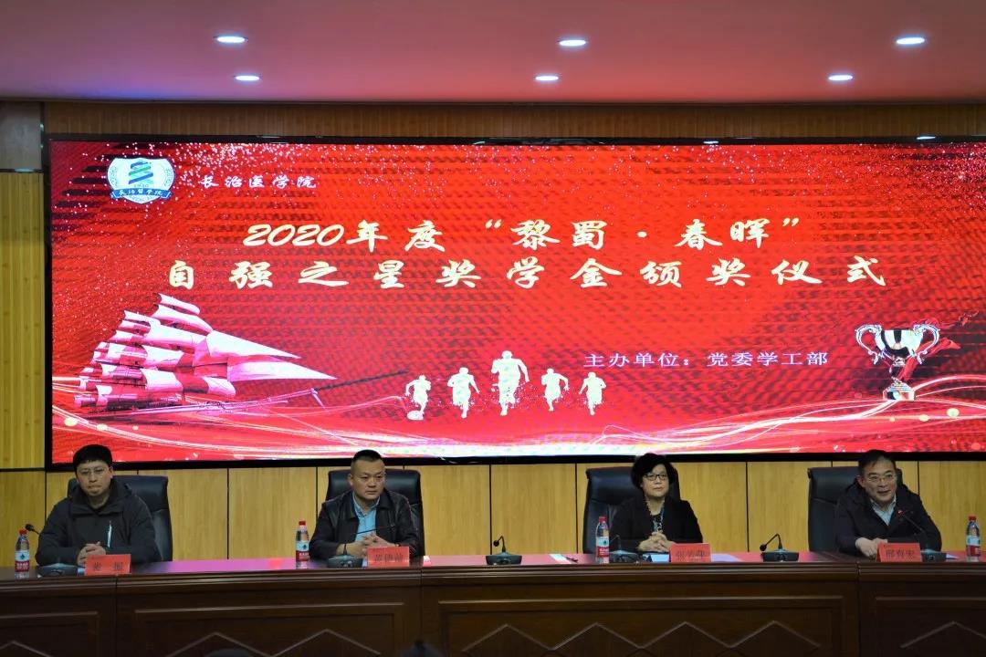 3月19日下午,我校在临床技能中心学术报告厅举行2020年度“黎蜀春晖·自强之星”奖学金颁奖仪式。校党委副书记张芳萍教授,山西黎蜀律师事务所黄德前主任,党委学工部副部长裴振出席颁奖仪式;学工部部长邢育宏主持颁奖仪式。