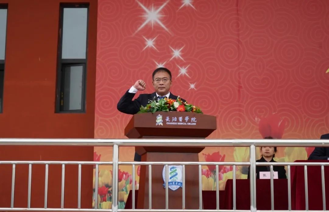 李华荣在讲话中结合全国疫情防控阻击战取得的重大战略成果,和同学们分享了中国共产党领导和我国社会主义制度的显著政治优势,围绕“医学的使命是什么”“医者的初心是什么”“长医学子应该做什么”作了深刻阐述,希望大家在百年未有之大变局、实现中华民族伟大复兴关键时期,谨记医学的使命是救死扶伤,是济世报国,是对每一个鲜活的生命负责;医者的初心是仁心仁术、舍己为人,是性命相托、厚德精业;长医学子要立志做“良医、名医、大医”,在长医这片具有红色印记的沃土上,努力汲取知识营养和精神力量,在求学做人的过程中,把“健康所系、性命相托”149个字的医学生誓言融入骨血,传承“长医精神”,践行“厚德精业、济世报国”的校训,孝敬父母,热爱人民,锤炼品格,报效祖国,努力提升和完善自身的综合素质,早日成为医药领域的高素质人才。
