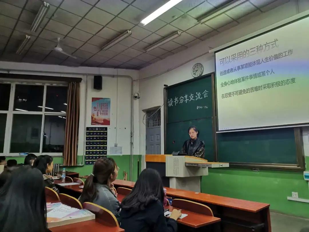 这次的读书分享交流会让同学们加深了对“念”和“困苦”的理解,也让同学们对人生有了新的看法。生活掌握在自己手上,困难会使我们的生活变得痛苦,但同时也会给我们带来新的生活和希望,每个人都有自己生命的意义,生命的意义赋予了我们重新认识生命的机会,也让我们不再因为一时的痛苦而变得歇斯底里。没有冬天不会过去,没有春天不会来临。“活”出生命的意义,人生全部的意义就在生活的每一分每一秒中。这就是此次读书分享交流会带给我们的思考与意义。