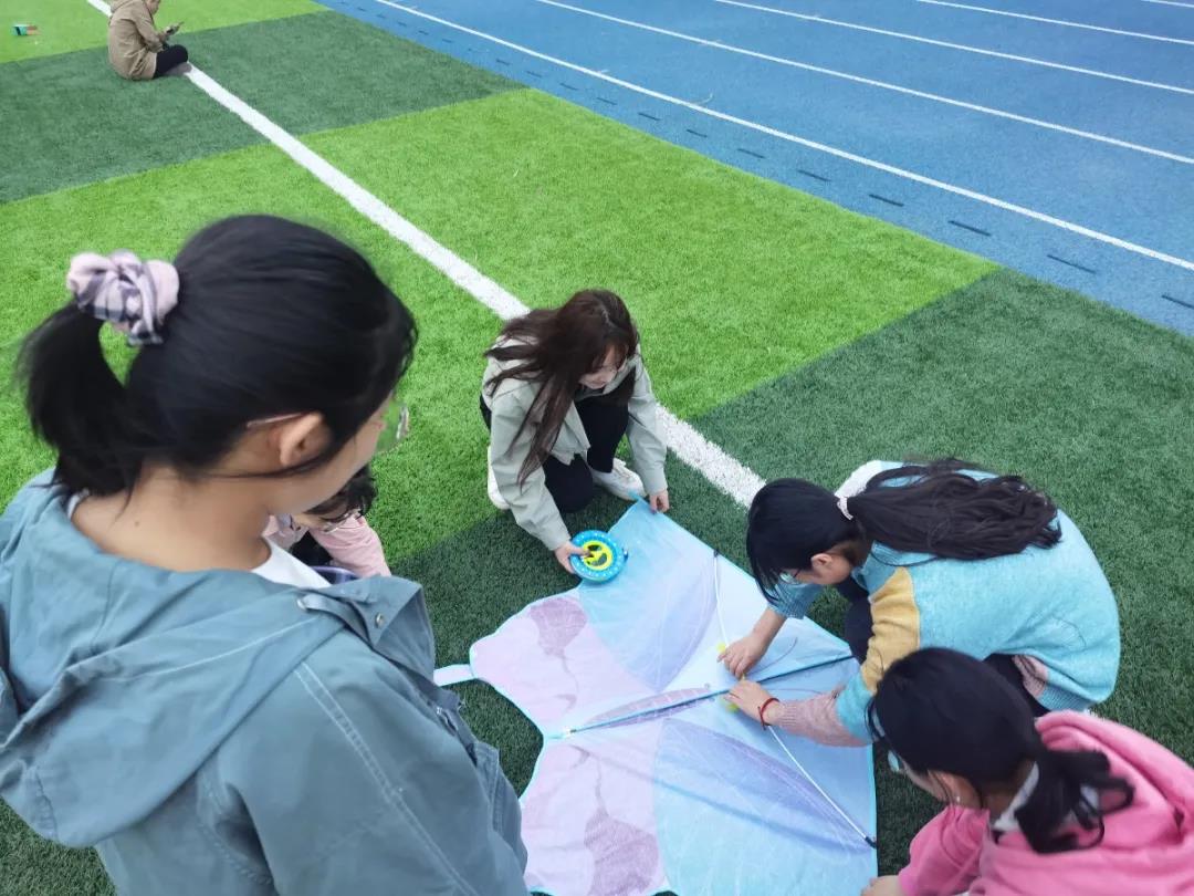 为增进同学们之间感情,加强班级凝聚力,4月9日,助产2001班的同学们结束了一周的课程之后,在操场举行了放风筝的小活动。同学们尽情地沐浴着春风,在校园中肆意的奔跑。让风筝带着他们美好的理想,在蓝天与白云之间越飞越高。看着风筝在天空中自由的翱翔,大家的脸上都洋溢着幸福的微笑。蓝天,白云,阳光,风筝构成了一幅美丽动人的画卷。我们的心始终是那一颗包含着最初梦想的心;那一颗承载着坚持的心;那一颗蕴含着千言万语的心;那一颗紧紧团结在一起的心。
