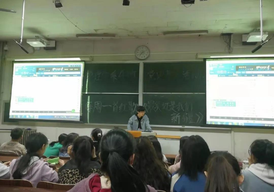 2018、2019级的同学们也纷纷开展了教育活动,在课余时间班级传唱爱国歌曲,形式多样,激励大家传承红色基因。