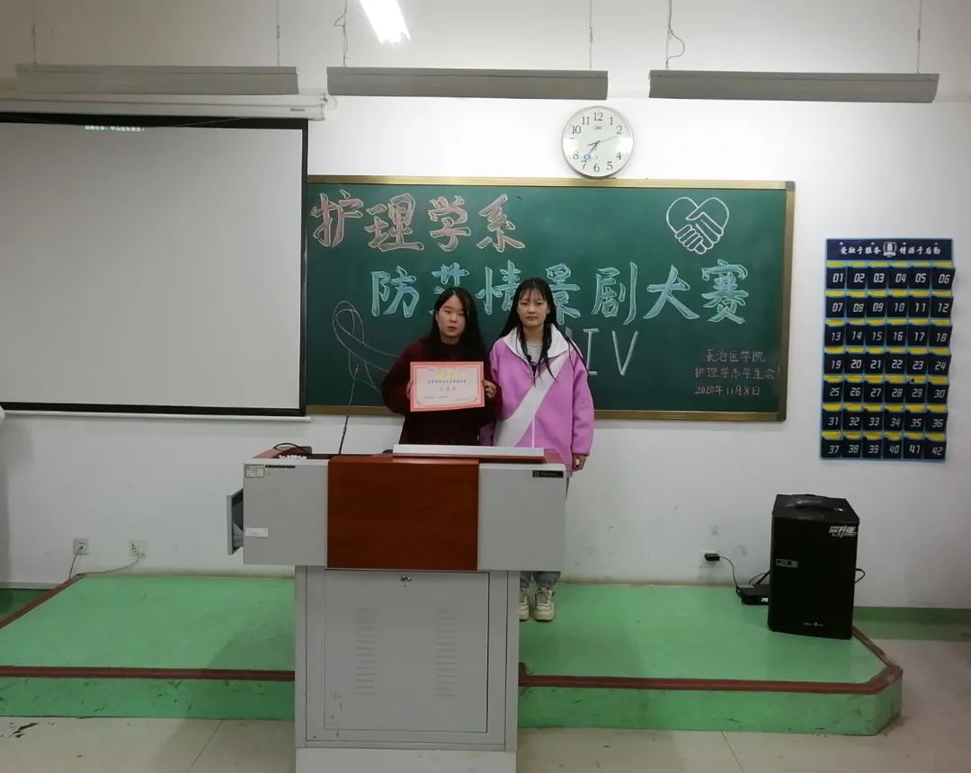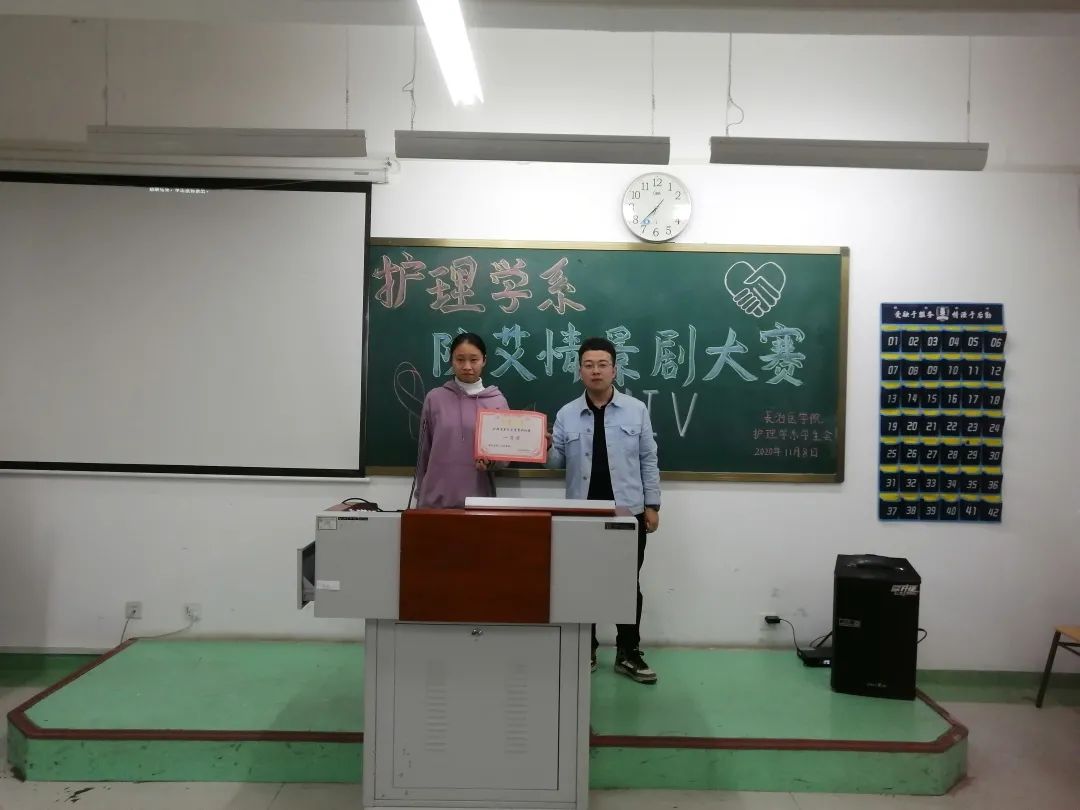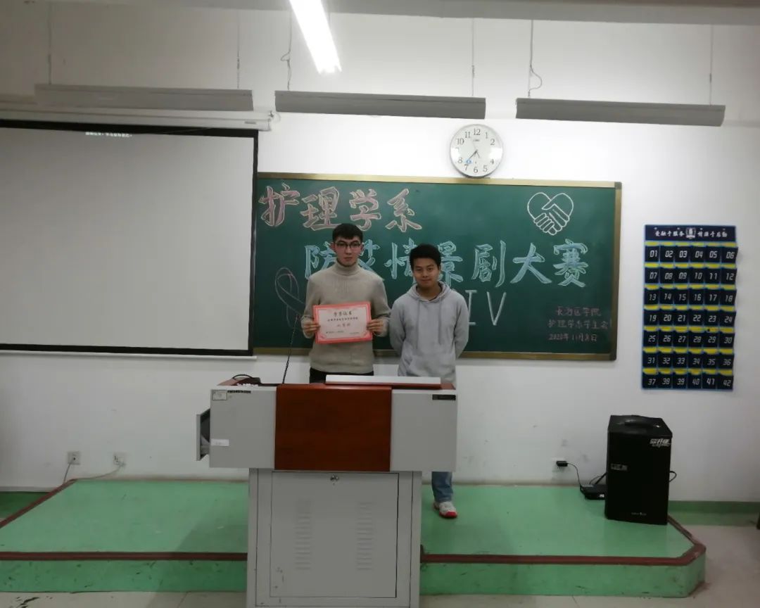 其他队伍的表演也相当出色,每一组都紧扣主题,以极其动人的故事展现了防治艾滋病的重要性。七组同学表演完毕后,在核算成绩的同时,由护理学系学生会主席张江泽做了总结发言,他强调同学们要提高自我保护意识,关爱自己、对自己负责,对家人负责。最后,由主持人宣布所有队伍的成绩以及获奖队伍。 “防‘艾’筑爱”队荣获一等奖,“爱胜过‘艾’”荣获二等奖,“隔‘艾’不隔爱”荣获三等奖,并由前两名队伍参加复赛。