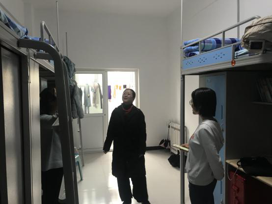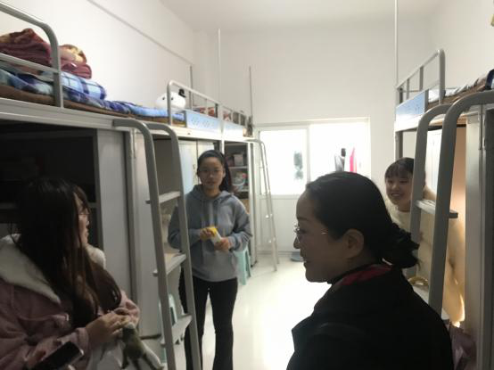 午饭时间,连老师来到了餐厅,同各位同学一起在餐厅吃饭,并与同学们亲切交谈,其中最关心的是学生能否吃的习惯餐厅的饭菜。午饭后,连老师也没有闲下来,在谢老师的陪同下她来到了宿舍楼,两个班的每一个宿舍她都敲开门,询问宿舍成员是否住的习惯,提醒同学们天冷注意保暖,多多参加社团活动,并叮嘱学生,拥有良好的宿舍环境,更加应该刻苦学习,取得优异的成绩,全面发展自己。