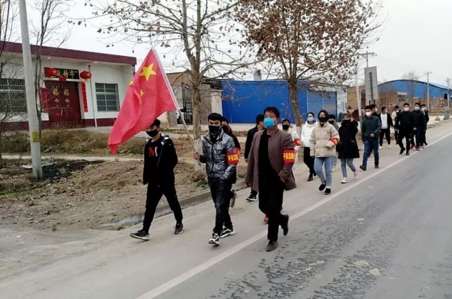 村委会组织共产党员和团员一同参与宣传活动,每天于固定的时间,在村子里巡逻,宣传这次的病情,增加大家的防护意识。遇到不戴口罩者,劝导其出入要戴口罩,并让其回家。