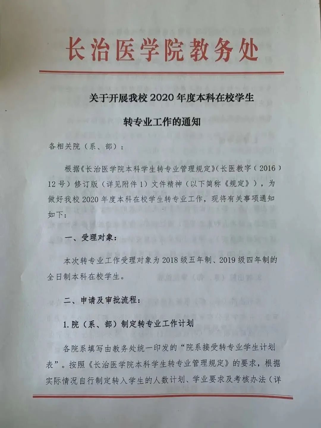 关于开展我校2020年度本科在校学生转专业工作的通知