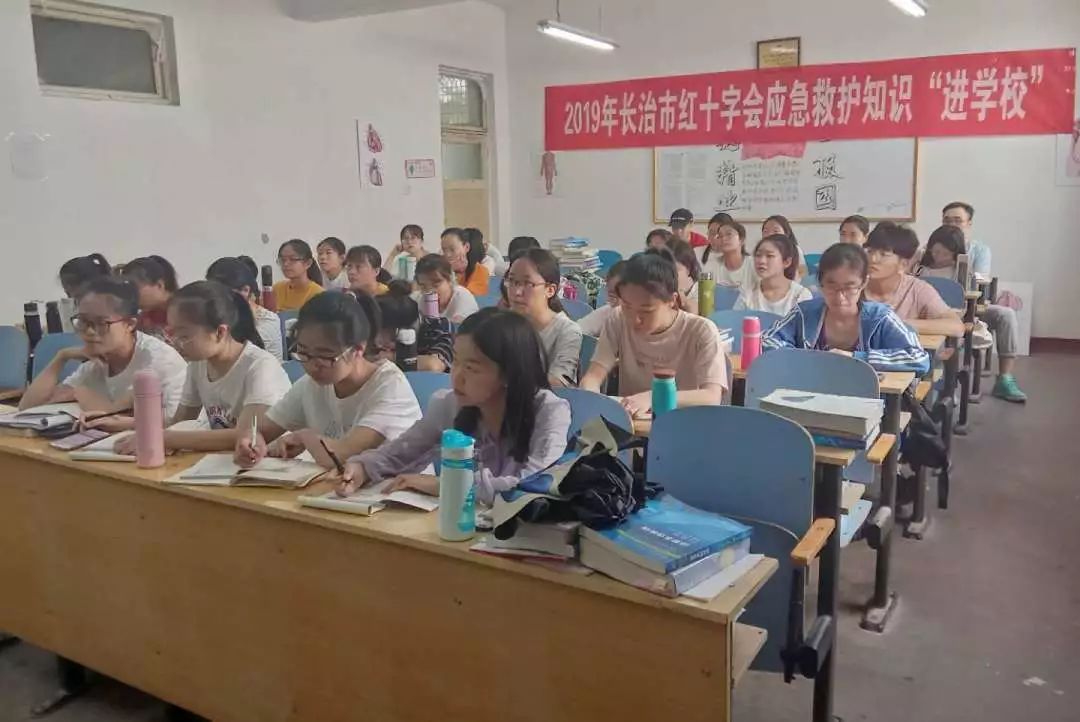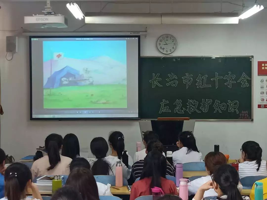 6月1日为理论教学。程林英护士长先向我们介绍了红十字会运动的主要职责,提倡我们发扬人道主义精神,保护人的生命和健康,以促进人类和平进步为服务宗旨。程林英担任长治市红十字会现场救护培训教师和山西省红十字会护理服务队长,她参与的长治志愿者分队已累计参加志愿服务2000余小时。她用丰富的实践经验为我们讲述了心肺复苏和创伤救护的基本要点及注意事项。最后进行了一场相关的理论考试,作为选拔救护人员的参考。