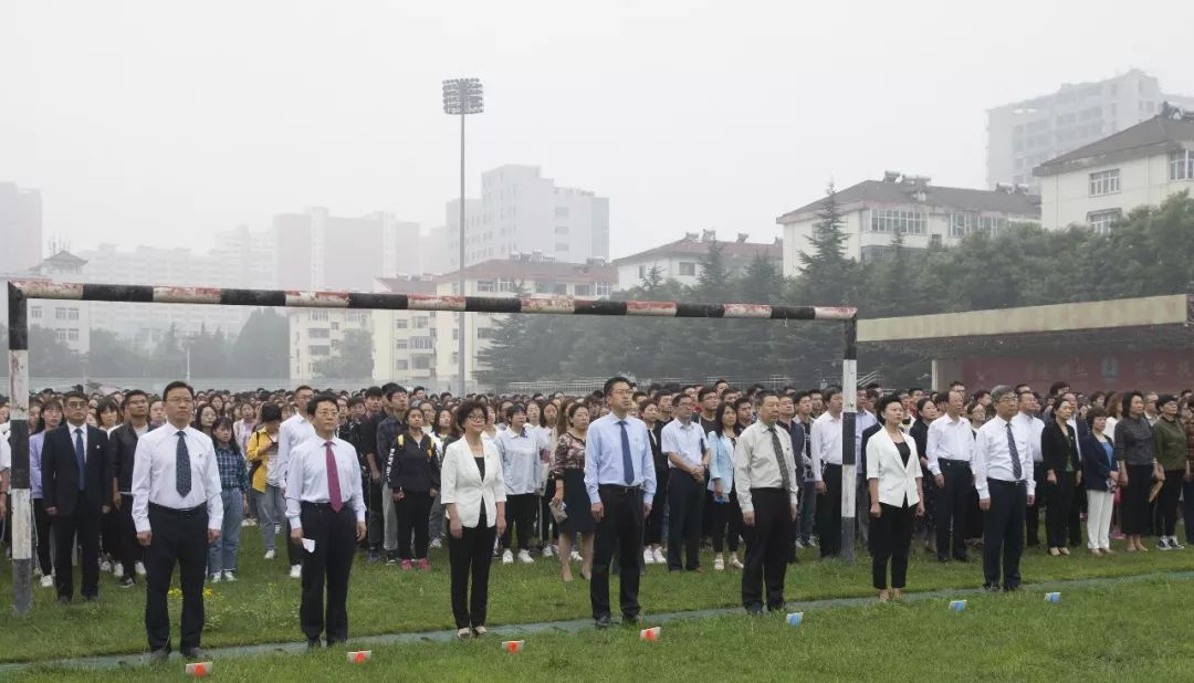 伴随着庄严嘹亮的国歌,五星红旗冉冉升起,全校师生行注目礼。