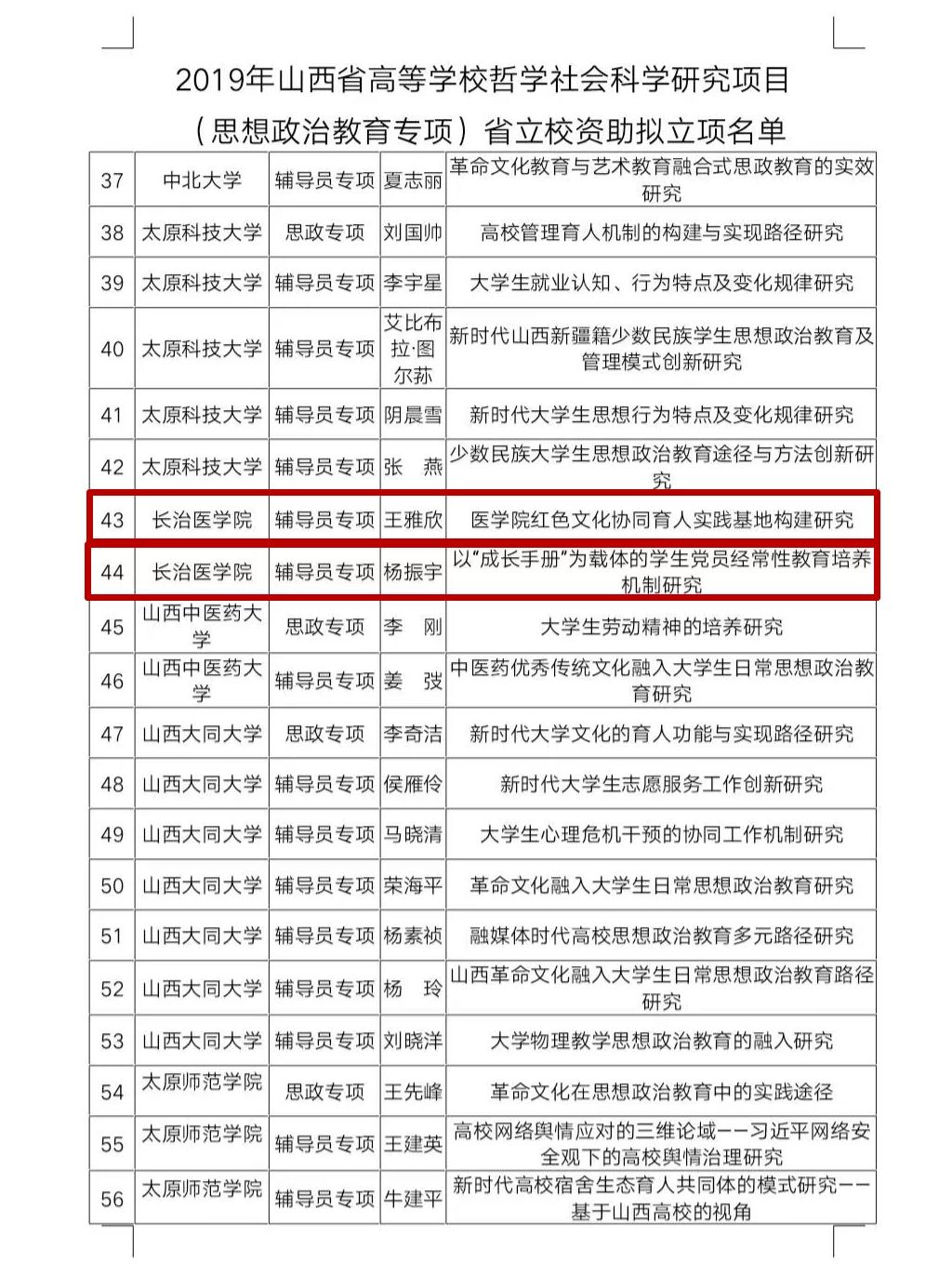 我校辅导员三项课题获得2019年度山西省高校哲学社会科学研究项目(思想政治教育专项)立项