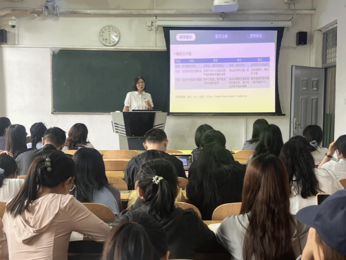 启动会结束后,贺利平博士进行第3期“智启研途”护理研究生学术沙龙讲座。她以“随机对照试验(RCT):从科学设计、规范注册到透明化报告”为题,结合实例详细讲述了RCT设计原则、注册流程、规范化报告的核心要点。讲座内容深入浅出,为在场师生提供了RCT研究从构思到成果发表的全链条、实战性指导,现场互动积极,反响热烈。