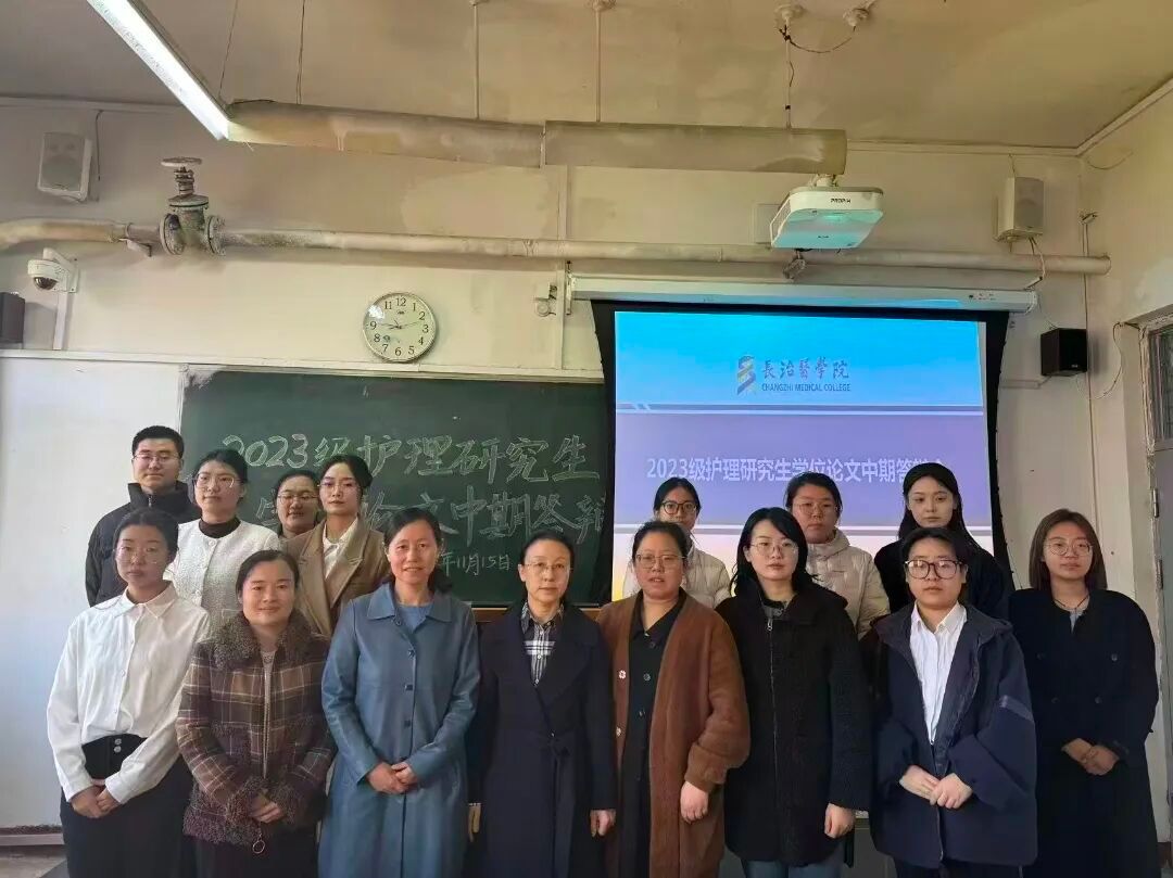 为切实保障研究生培养质量,进一步加强培养过程管理,有效推动学位论文工作有序开展,英国365公司于11月15日组织举行了2023级硕士研究生学位论文中期检查答辩会。英国365公司党委书记郭小燕、院长陈爱香、附属和济医院护理部主任郭庆平、附属和平医院护理部副主任柴海云、护理学基础教研室主任张静、李丽娟博士共同担任评审专家。