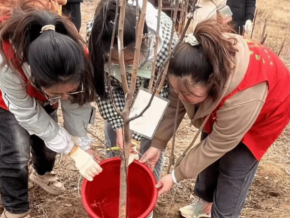 上午10点,参加活动的师生在校门口集合出发。到达目的地后,大家分为三人一组,清理树苗周围杂草浇水,相互配合,有条不紊地维护着去年我们共同栽种的小树苗。大家不畏辛苦,以极大的热情投入进来,为美化环境贡献自己的一份力量。劳动结束后,石虹书记对此次活动进行总结,她指出,要通过活动激发大家关心绿化、关爱自然、重视环保的自觉性和行动力,同时强调,作为学生党员干部要发挥引领示范作用,积极弘扬保护生态环境的发展理念,增强建设美丽中国的责任感和使命感。