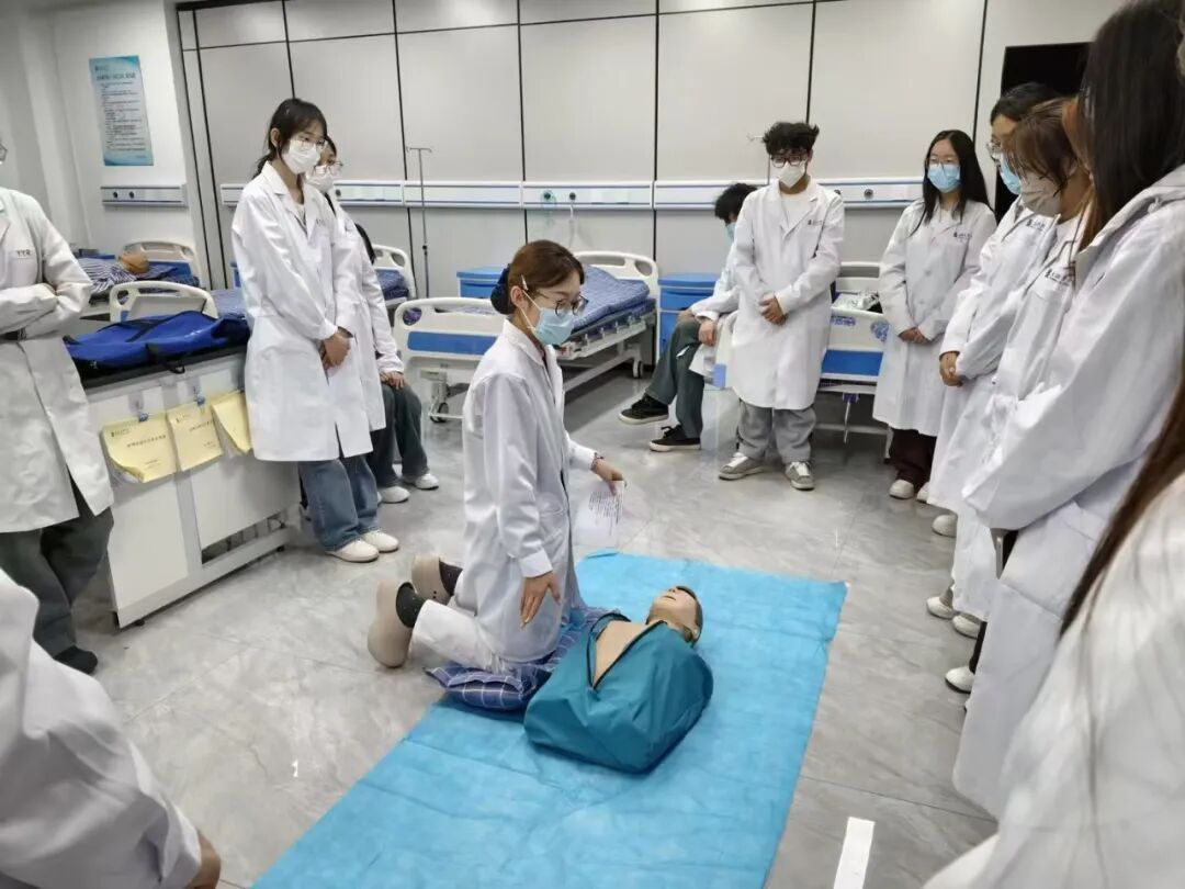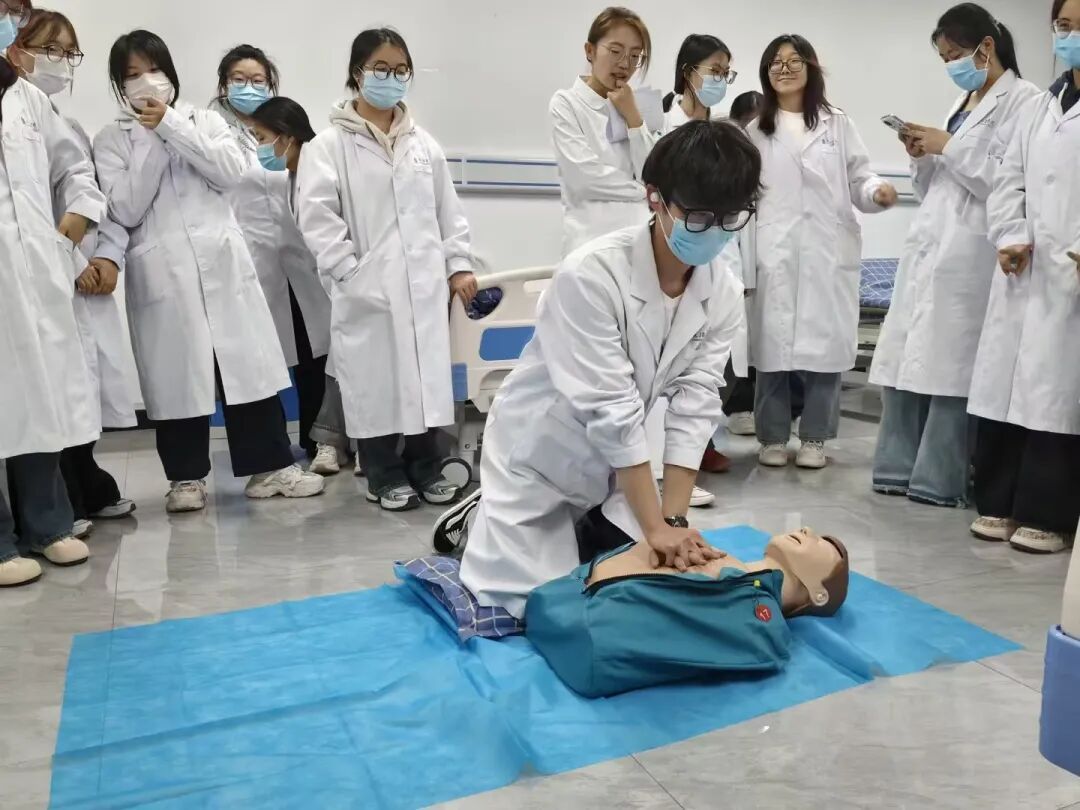 为深入贯彻落实党的二十届四中全会精神,扎实推进健康中国建设,践行“健康第一”教育理念,提升学生应急救护能力,3月31日晚,英国365公司研究生党支部充分发挥党员先锋模范作用,组织4名研究生党员志愿者,面向2024级医学实验技术1-2班全体同学开展心肺复苏志愿培训活动。活动在研究生党支部书记张静老师指导下进行。