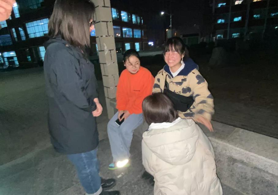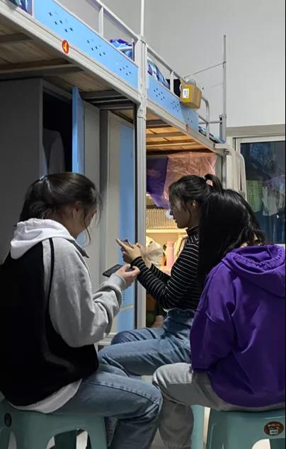 在观看直播后,大家学习的兴致高涨,在校园长廊内进行小组探讨。