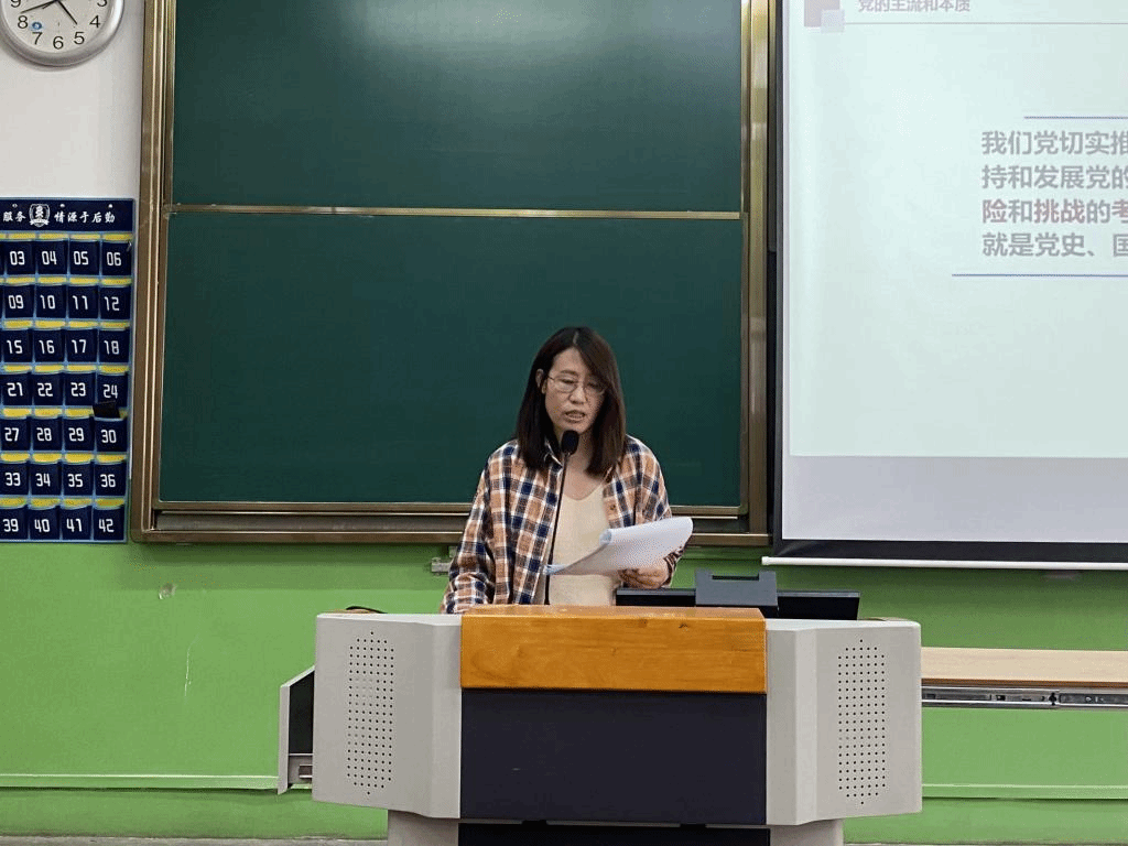 最后,系党总支石虹书记做总结。她表示,牛翠萍教授的授课观点鲜明、内容丰富、思想明确。通过列举建国以来全国各族人民在党的领导下所取得的成就,让老师和同学们感受到了深深的自豪感,作为新时代青年大学生要从党的光辉历程中汲取力量,坚定听党话,跟党走的信念。